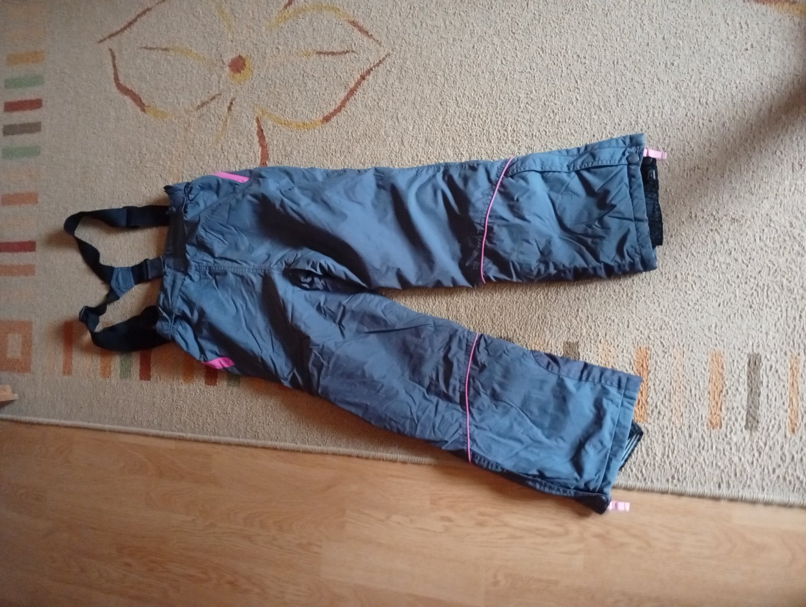 Predám super otepľovačky v TOP stave. Veľkosť 140/ 8- 9 rokov, rozmery dĺžka 93cm, sed vpredu 24cm, sed vzadu 30cm, pás 33cm. Sú s vačkami vpredu aj vzadu, dolu sa dajú super rozopnúť.