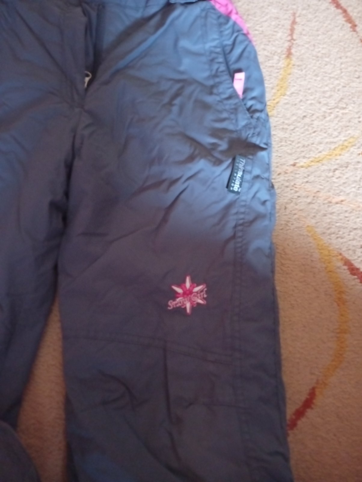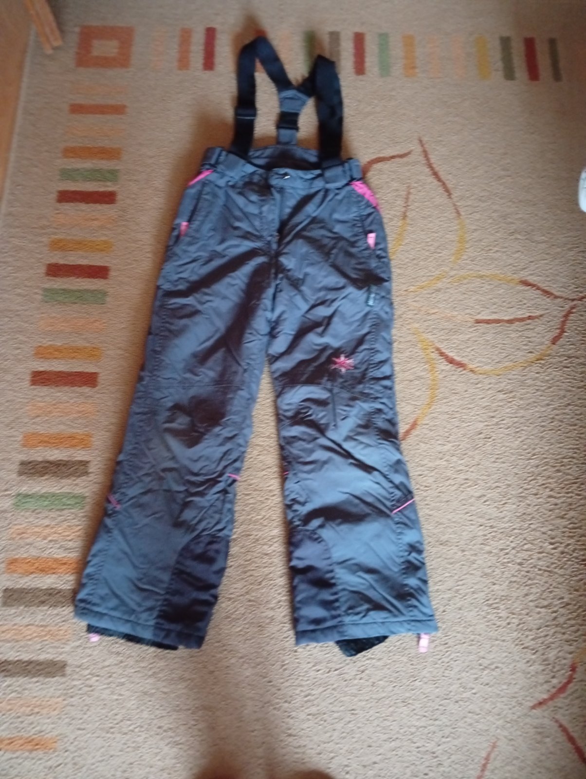 Perfektný stav, hrejivý sed, mäkké vystuhy na kolenách, zips na skratenie/predlzenie nôh, takže vydržia aj 2 sezóny. Veľkosť 134/140, vodný stĺpec 10 000. Bližšie informácie aj na stránke decathlonu.