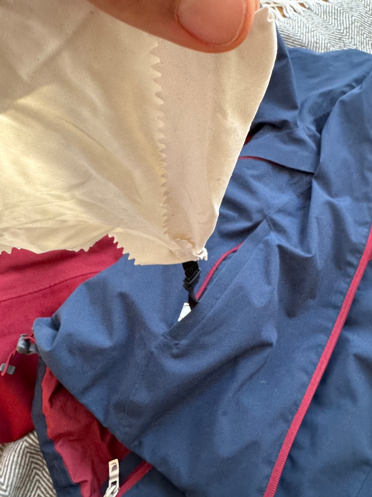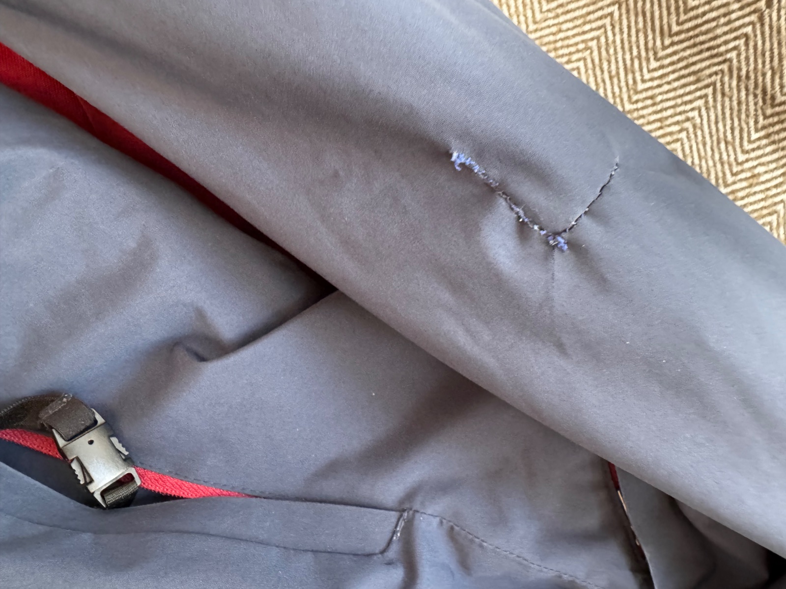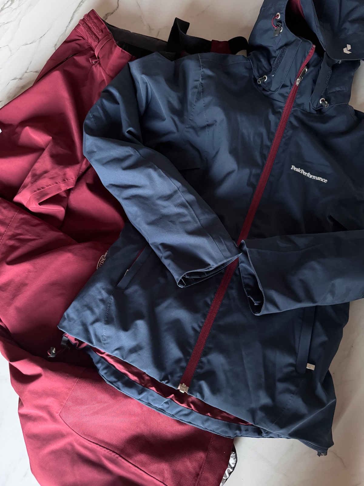 Klasické známky užívania - vid zašitý rukav na bunde a na nohaviciach od lyži. Ale plne funkčné je to len esteticke