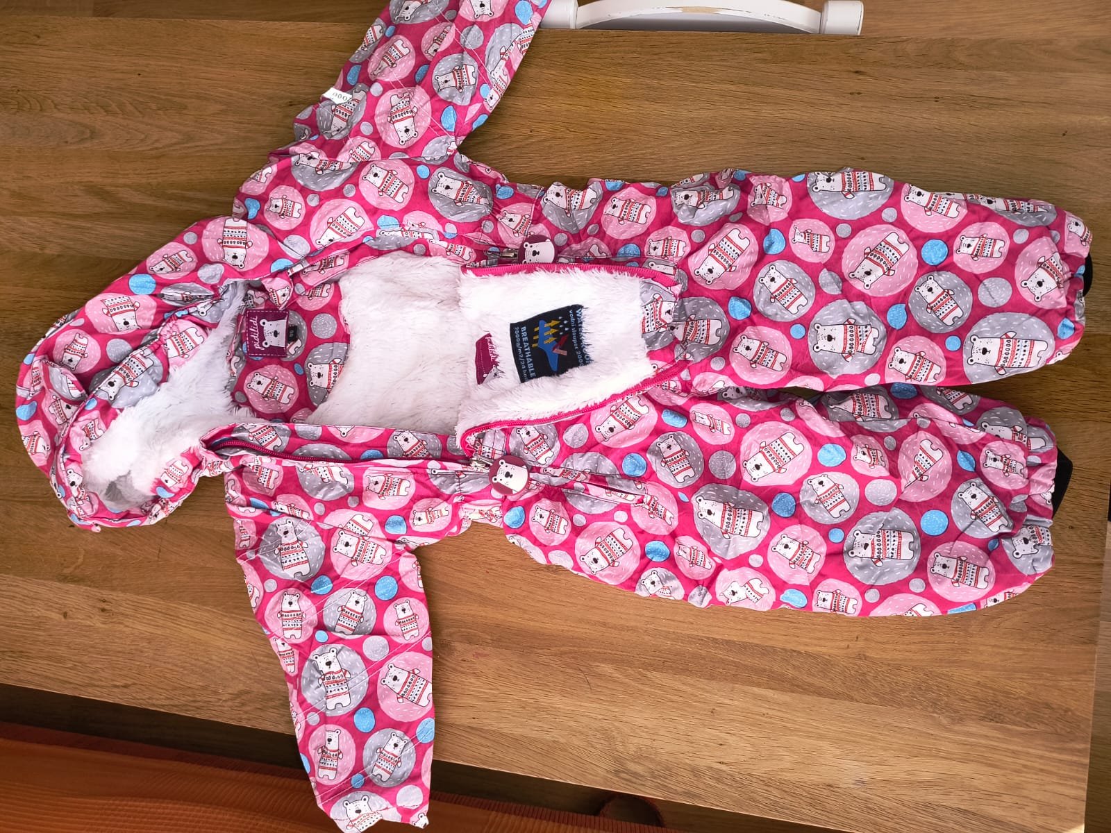 Zimné nepremokavé kombinézy pre najmenších. Vďaka vnútornému obloženiu "falošný kožušina, je teplá a pohodlná na nosenie. Praktické zapínanie 2 zipsy, rukávy sa dajú vyhrnúť podľa potreby, kapucň...