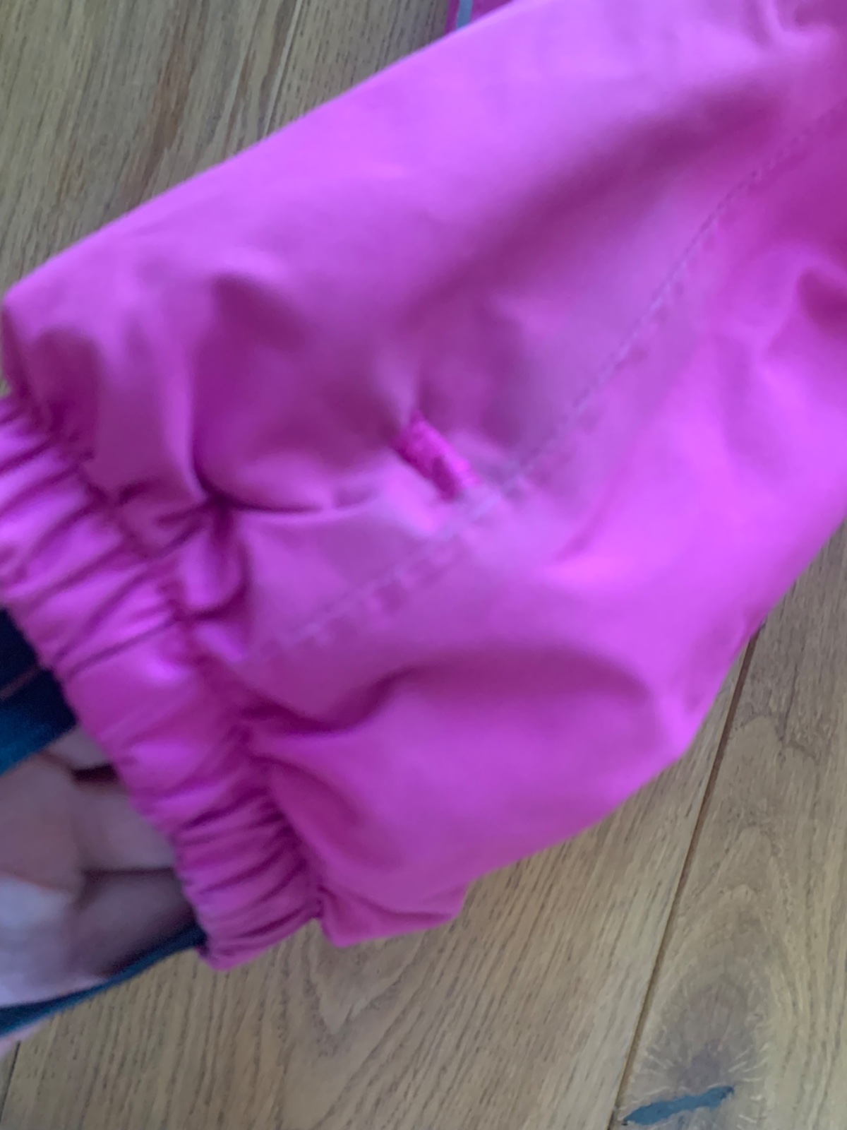 nosenie poznať naa kolenách a zadku, pod bradou 1 fľak a v oblasti členkov na obich nohách z vnútornej strany prešitie,