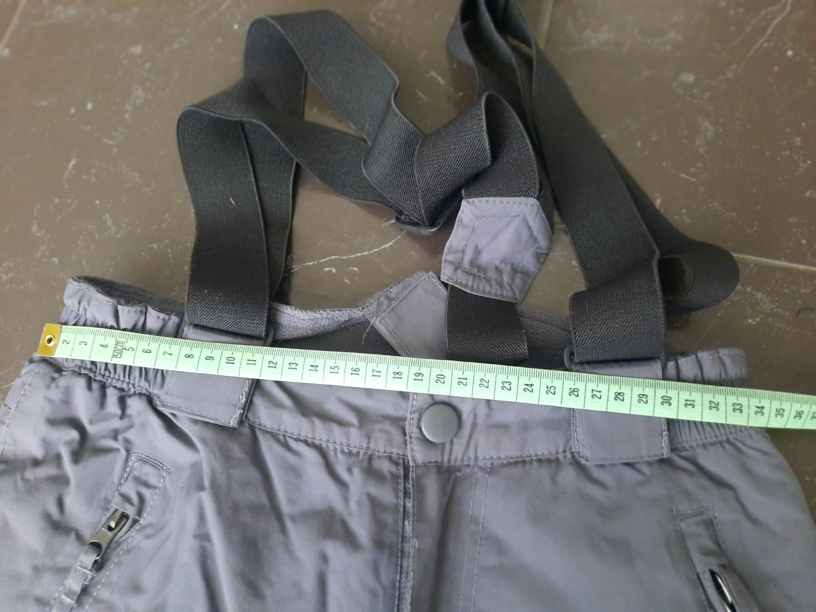 Šedé otepľovačky, nosené 1 sezónu, majú malú chybičku - kaz na nohavici vpredu, asi preťaté, všimla som si ho až pri fotení. Rozmery viď foto.