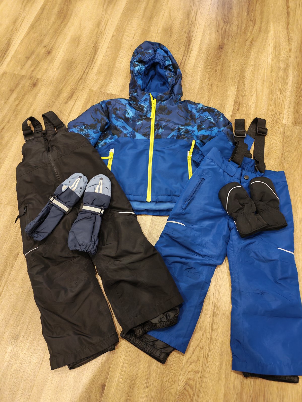 Bunda vôbec nenosena, ešte s visačkou. Oteplovaky nosene, ale nie sú vysuchane a pod. Bunda- dĺžka 39 cm, rukáv od pleca 35 cm. Oteplovaky - dĺžka od rozkroku 40 cm , celková dĺžka 77 cm, šírka v ...