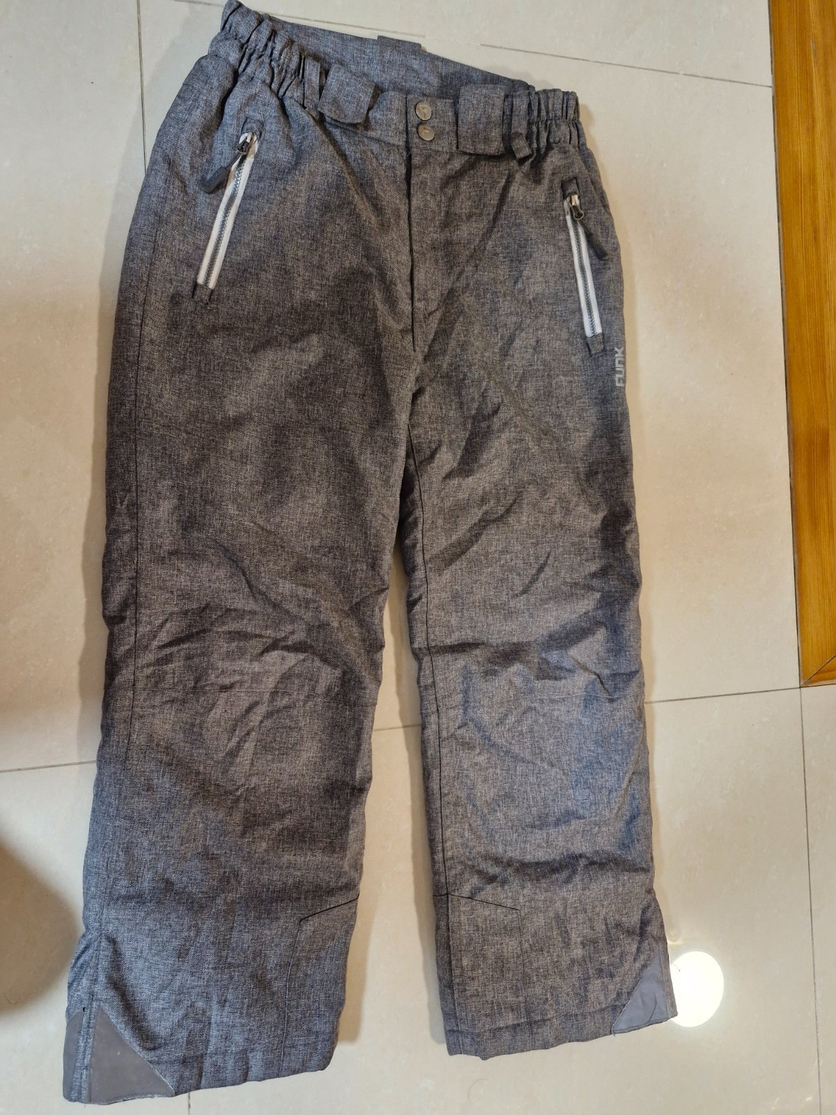 Lyziarske nohavice bledosivej farby, nosene, dobry stav, az na mensie flaky na spodu nohavic a predratie. (foto) 2 predne vrecka na zips, 1 zadne vrecko na zips, pas sa da stiahnut suchym zipsom. R...