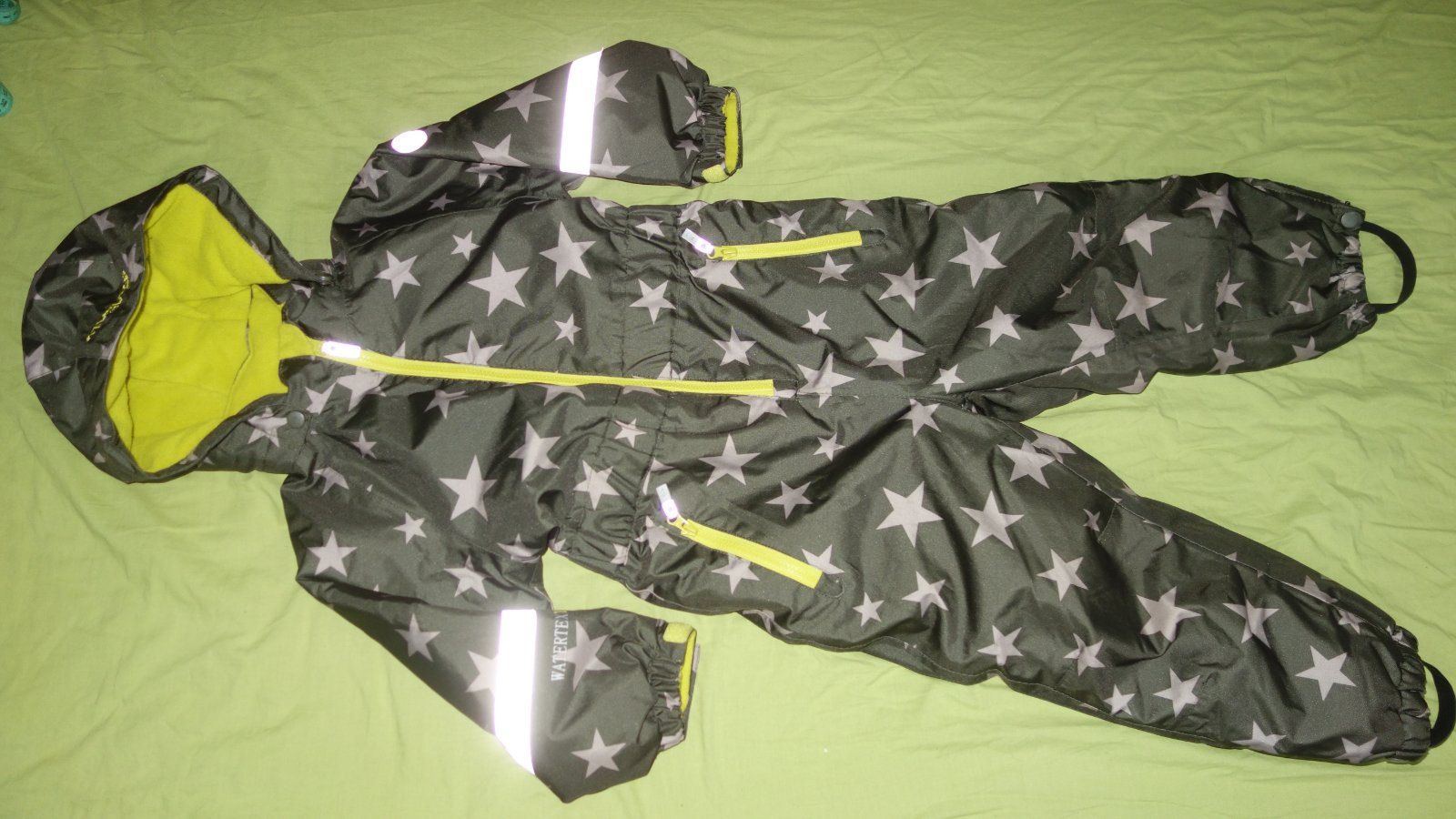Nadherny zimny overal- novy, bez visaciek- medzi nozkami je na kusku rozparany. Je hruby. Kapucna sa da odopnut. Vodny stlpec je 10.000mm.