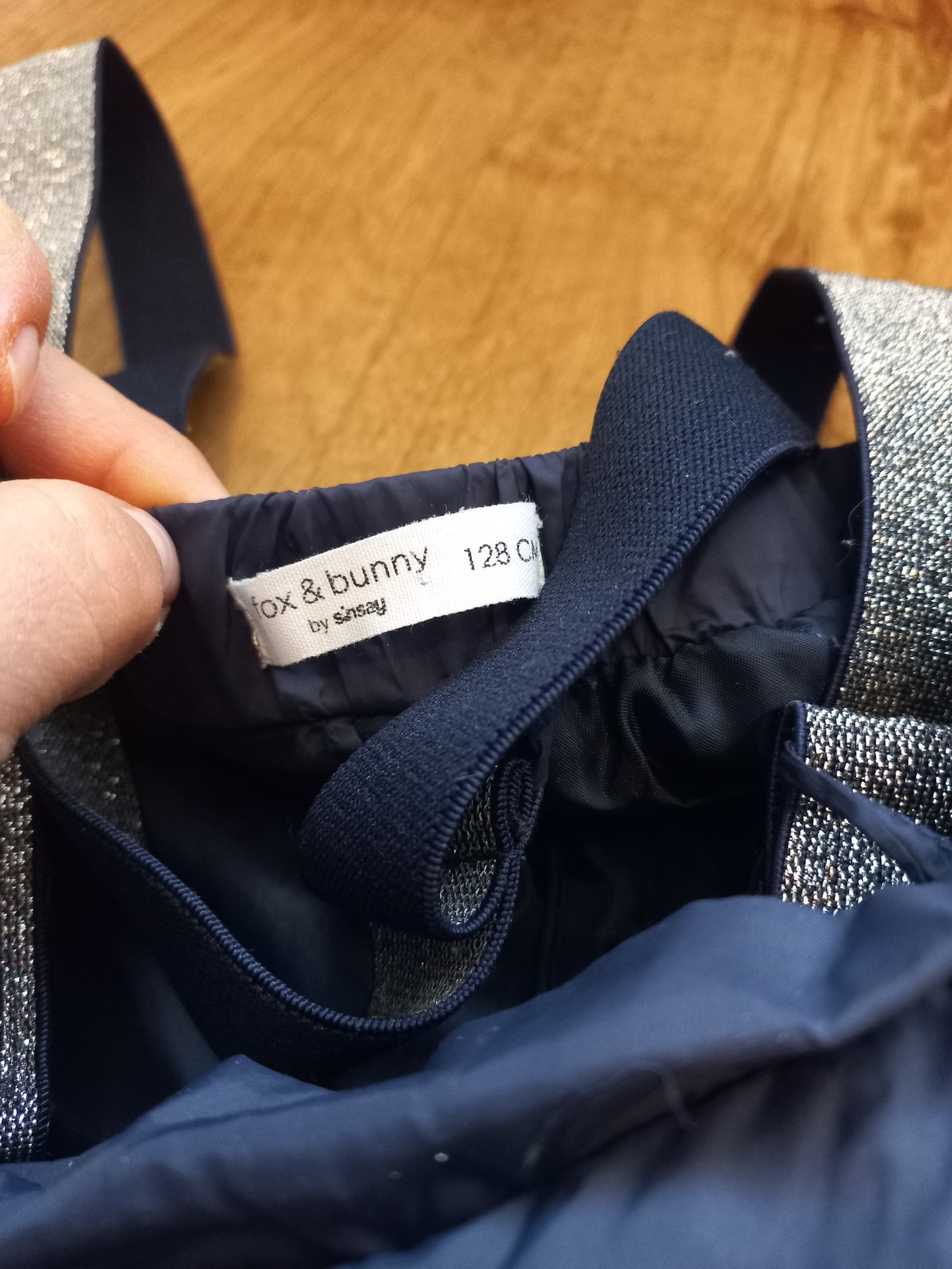 Predam oteplovacky, presivane, uzsi strih, trblietave traky, pekny noseny stav, na kolenach minimalne suchnute. Sinsay, 128.