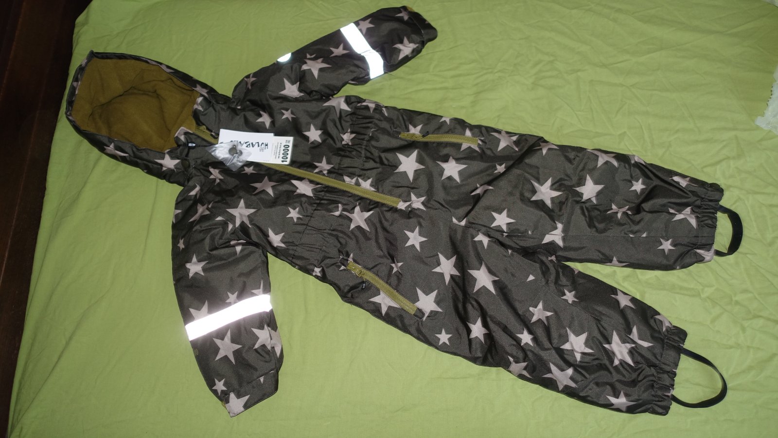 Nadherny zimny overal- novy, s visackami. Je hruby. Kapucna sa da odopnut. Vodny stlpec je 10.000mm.