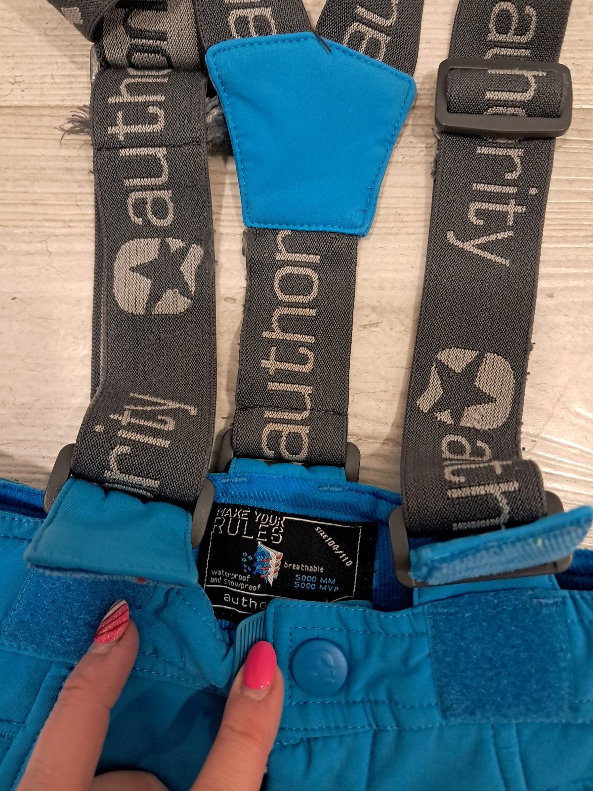 Predám vodeodolné lyžiarske nohavice, veľ. 104/110, zn. Authority, s odnímateľnými trakmi, nastaviteľným pásom na suchý zips, stav ako nové.