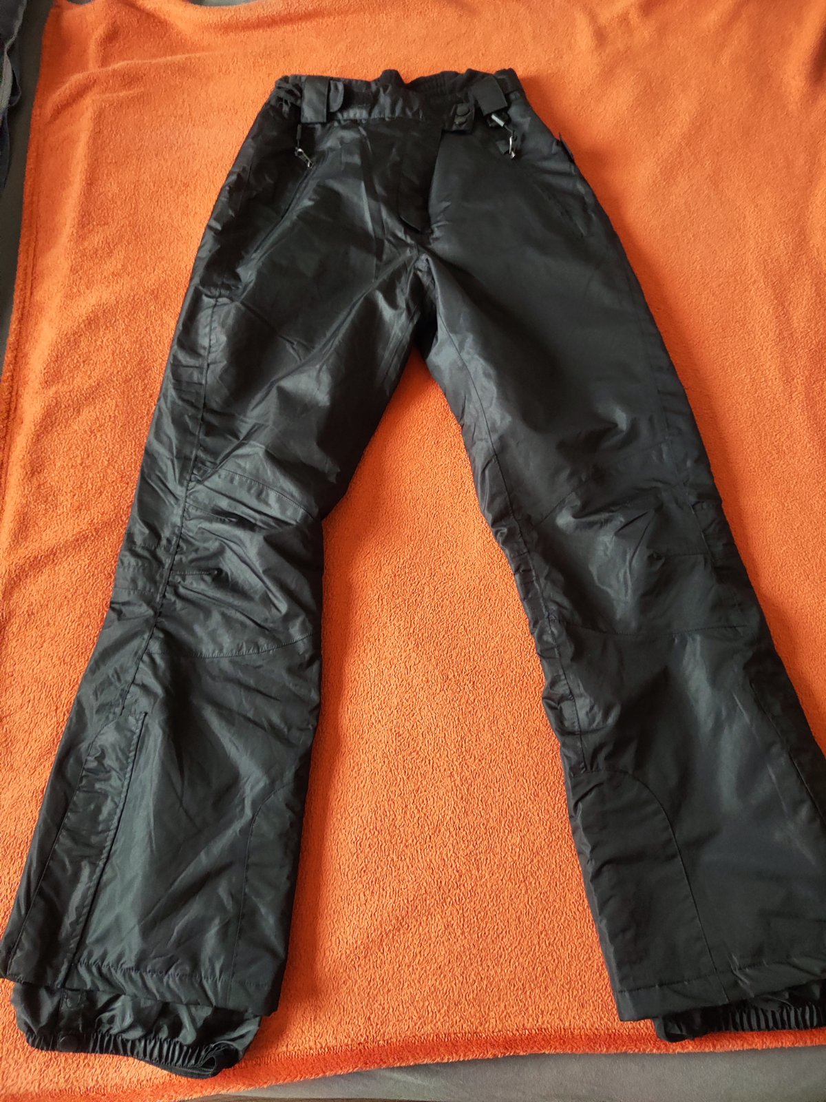 Oteplovacky velk. 38, dámske, ale nosil ich syn, vysoký a štíhly. Veľmi dobrý stav, akurát na spodku pravej nohavice zrejme rozrezana látka korčuľou. Plne funkčné, určite ešte posluzia