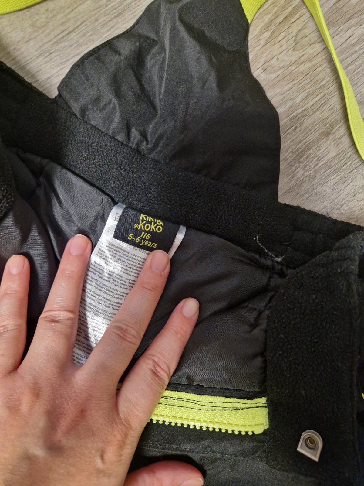 Píše 116 ale sú dlhšie, v páse gumička- nie je vhodne pre silnejsie deti, v pase je aj snurka. Do suchej zimy keďže v daždi a mokrom snehu premoknu. Syn nosil pri 122 keďže je stihly. Bez poskodenia