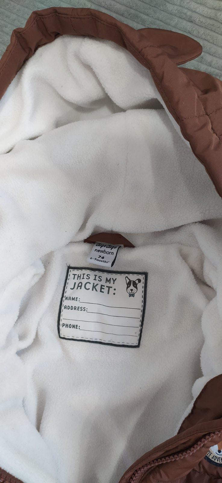 Pekný teplý overal Carters 9mesiacov, rukavy na prstoch preklopné, kapucna s kožušinou a uskami.