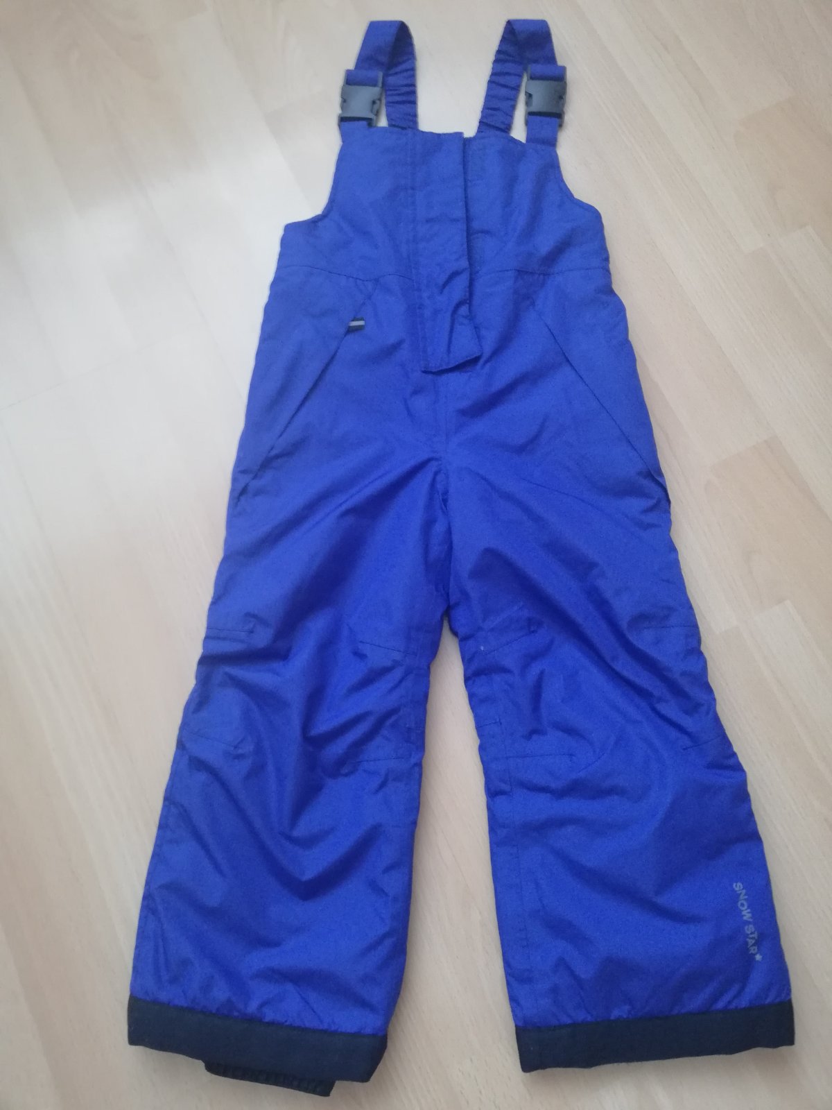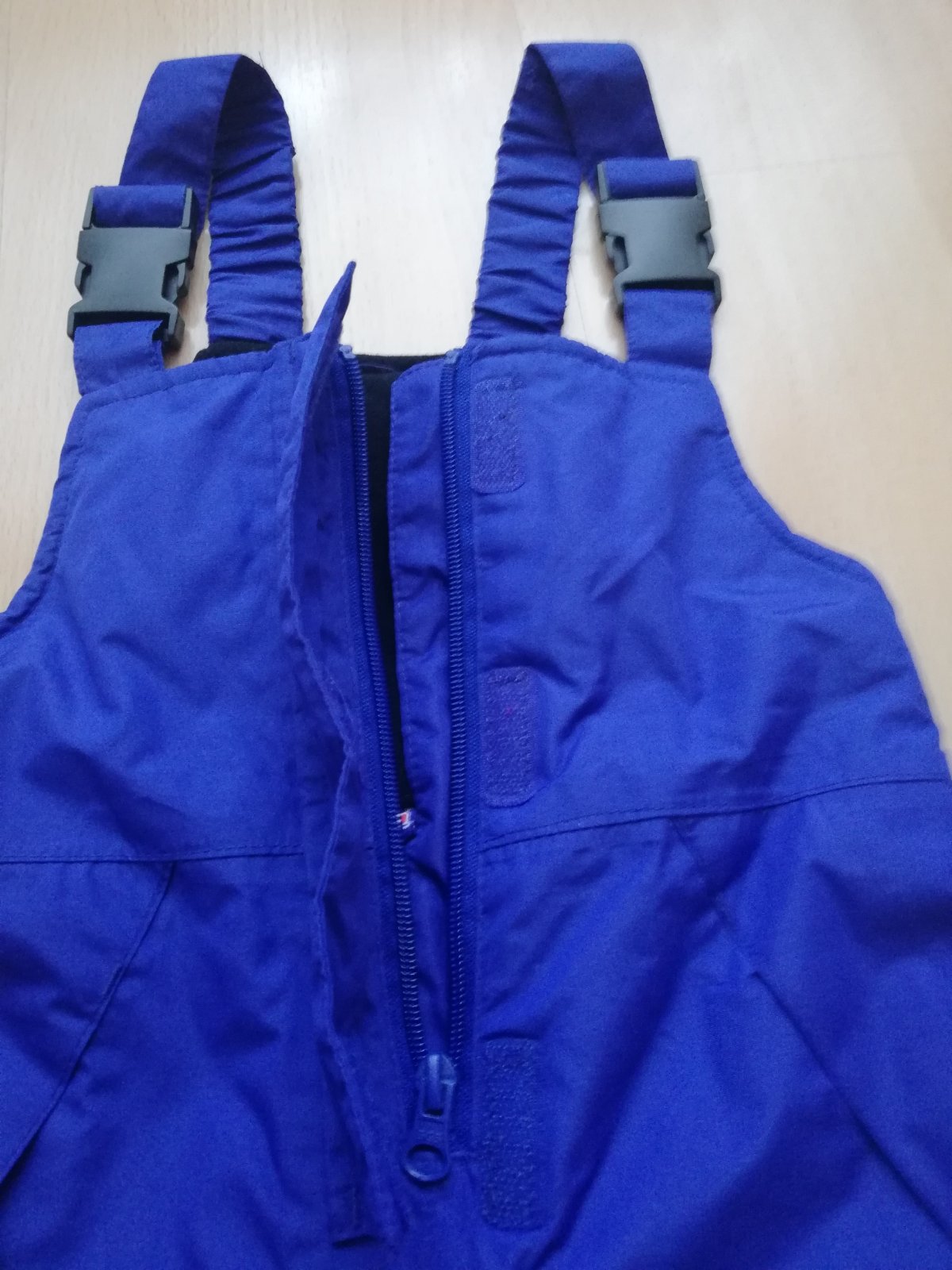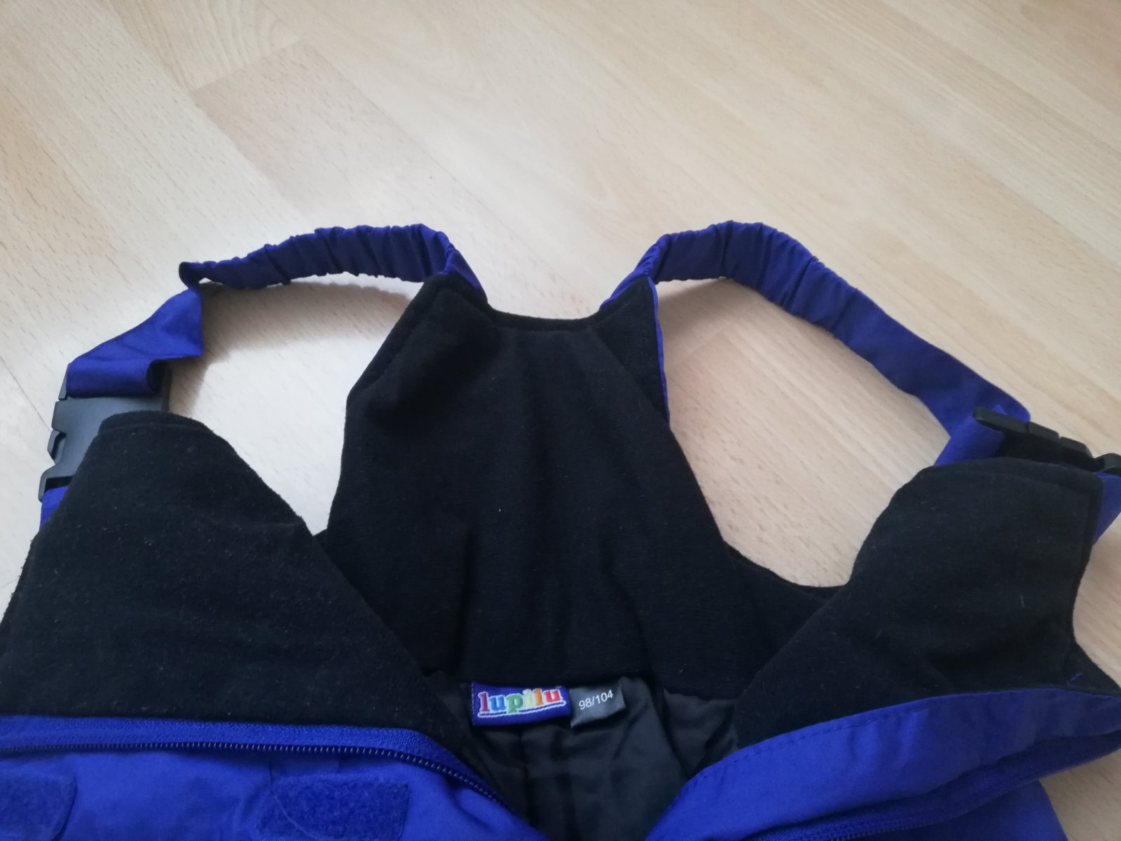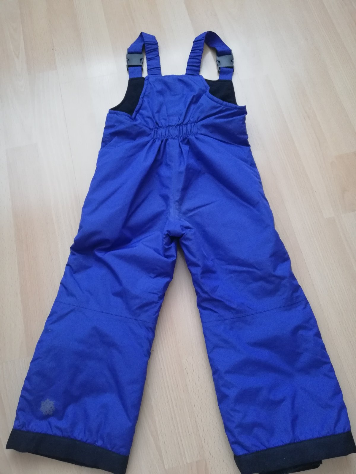 Detske oteplovacky zn. Lupilu vel 98/104 s trakmi a zvnutra flausovym zateplenim v casti hrudnika, zapinanie na zips a suchy zips v hornej casti, 2 skryte vrecka vpredu, podsivka s gumickou na nohach na zimnu obuv, vzadu stiahmutie na pase na gumicku, reflexne prvky.