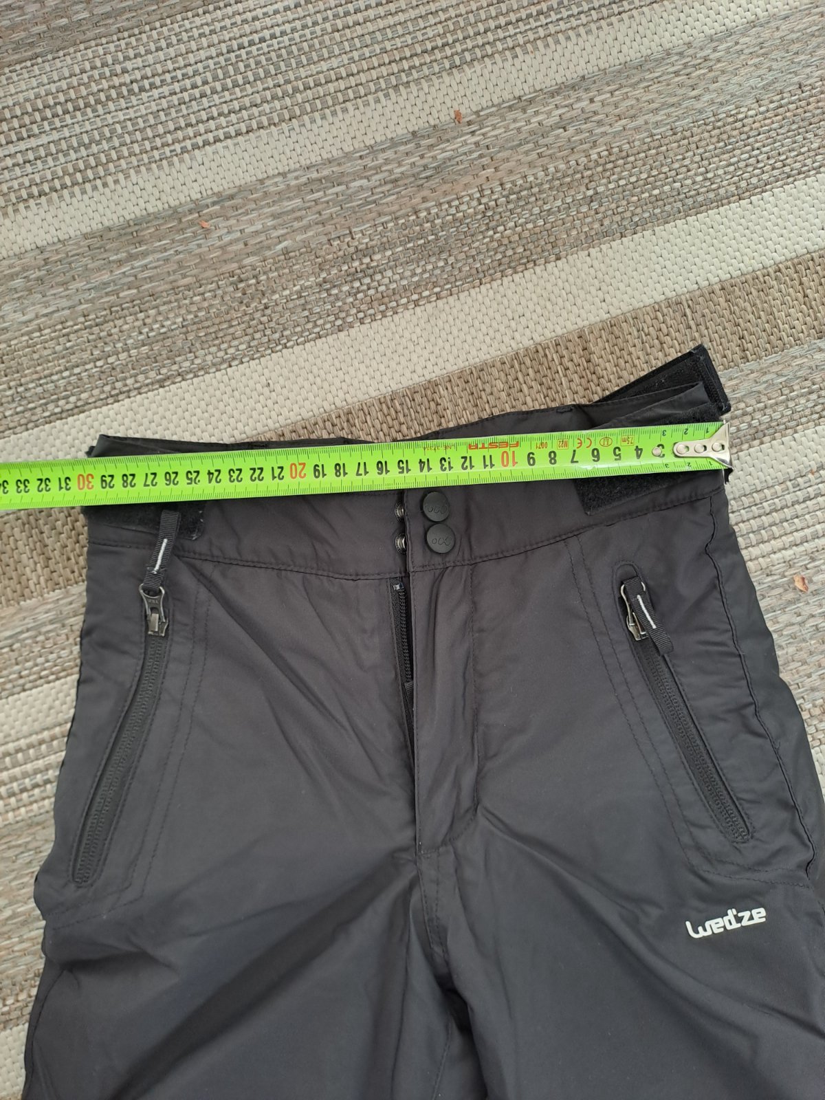 Predám úplne nové dámske čierne oteplovačky/lyžiarky č. 38, značka Decathlon. Dĺžka od opasku po spodok nohavice je 110cm, opasok 81cm, boky 106cm. Pás je regulovateľný suchým zipsom s gumou. Vpred...