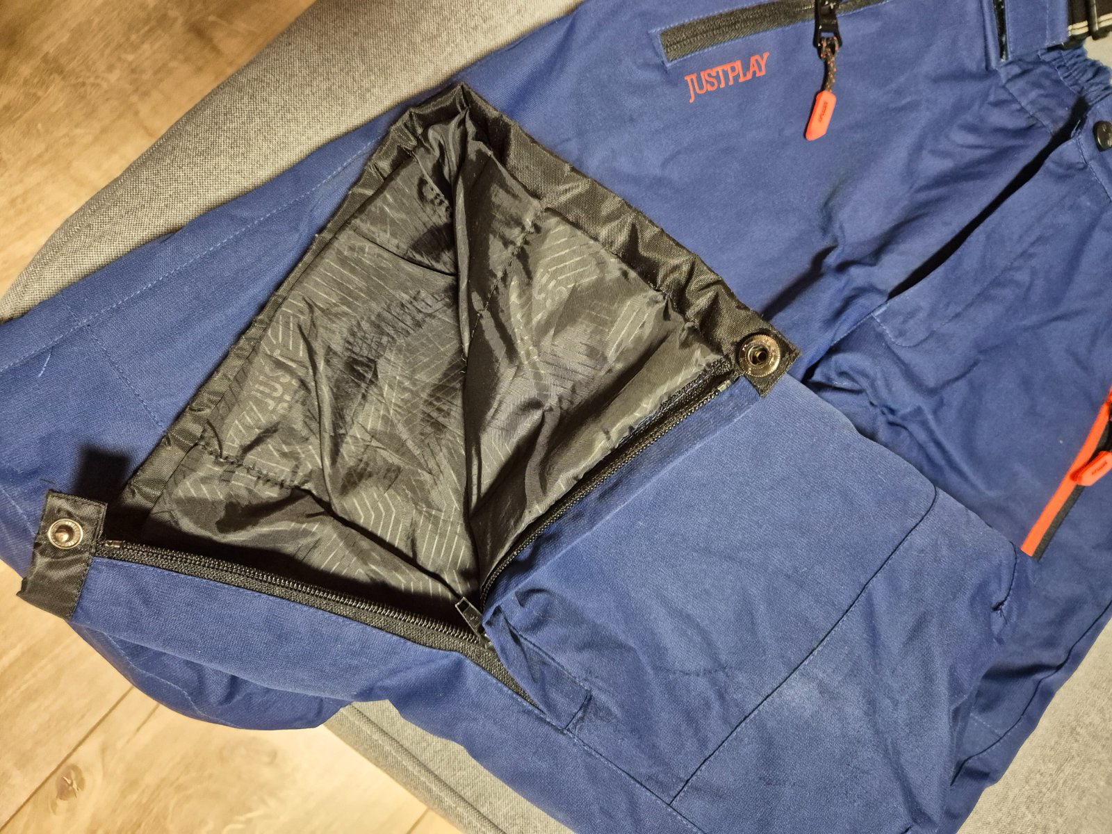 Pas na gumicku, da sa utiahnut suchymi zipsami, su plne funkcne, vrecka vpredu aj vzadu na zips, rovnako ako spodok nohavic na zips a gombik.Teplučké.
