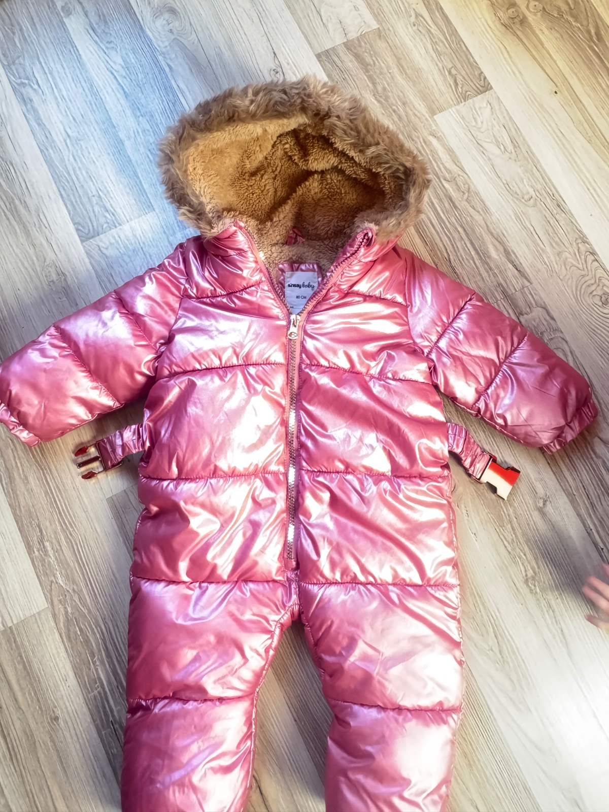 Predám nádhernú kombinézu metalickej cyklamenovej farby v top stave!!! Veľkosť 80 celková dĺžka od krku po koniec 67cm