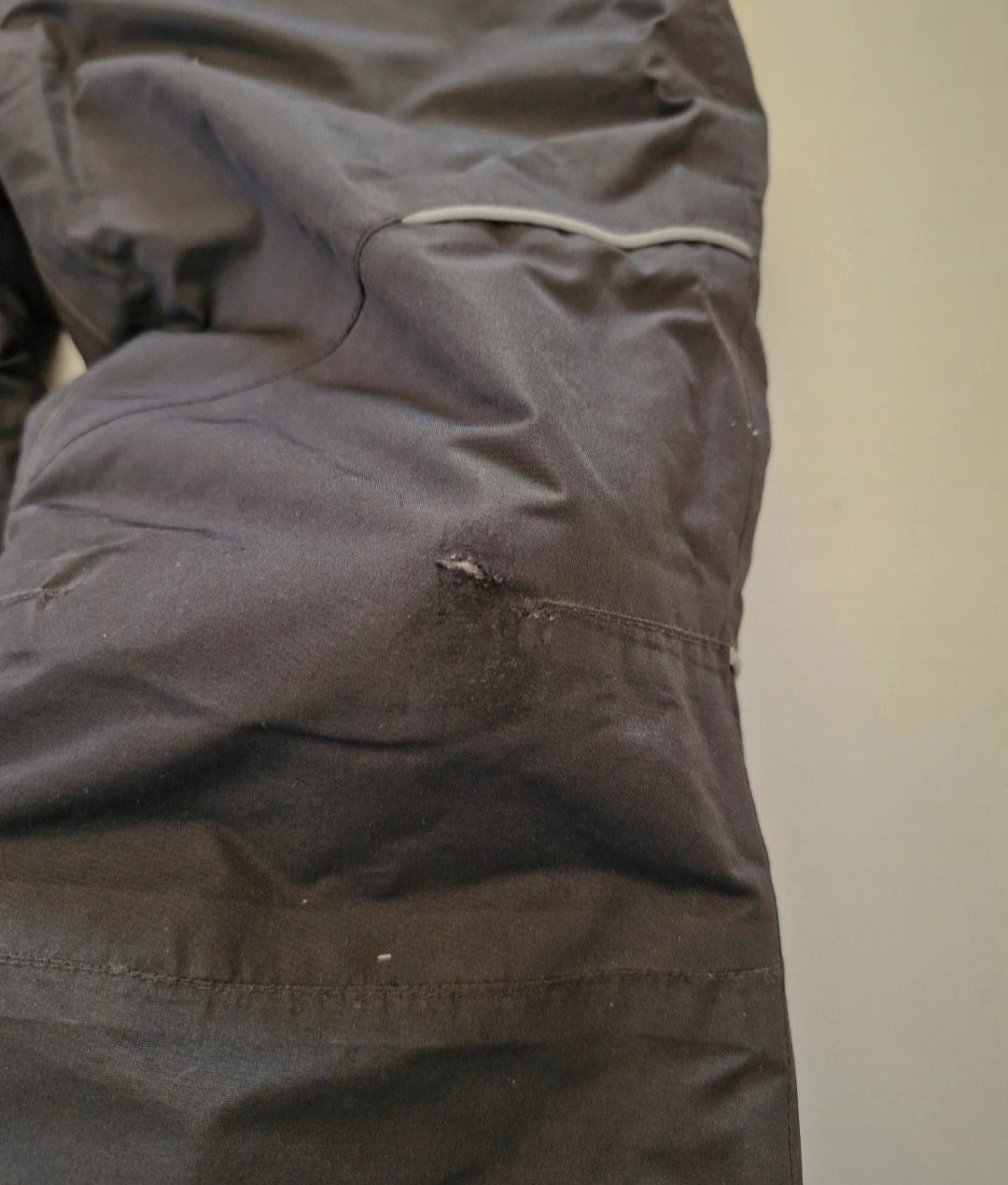- zadná časť spodku nohavíc zodratá, viď. foto