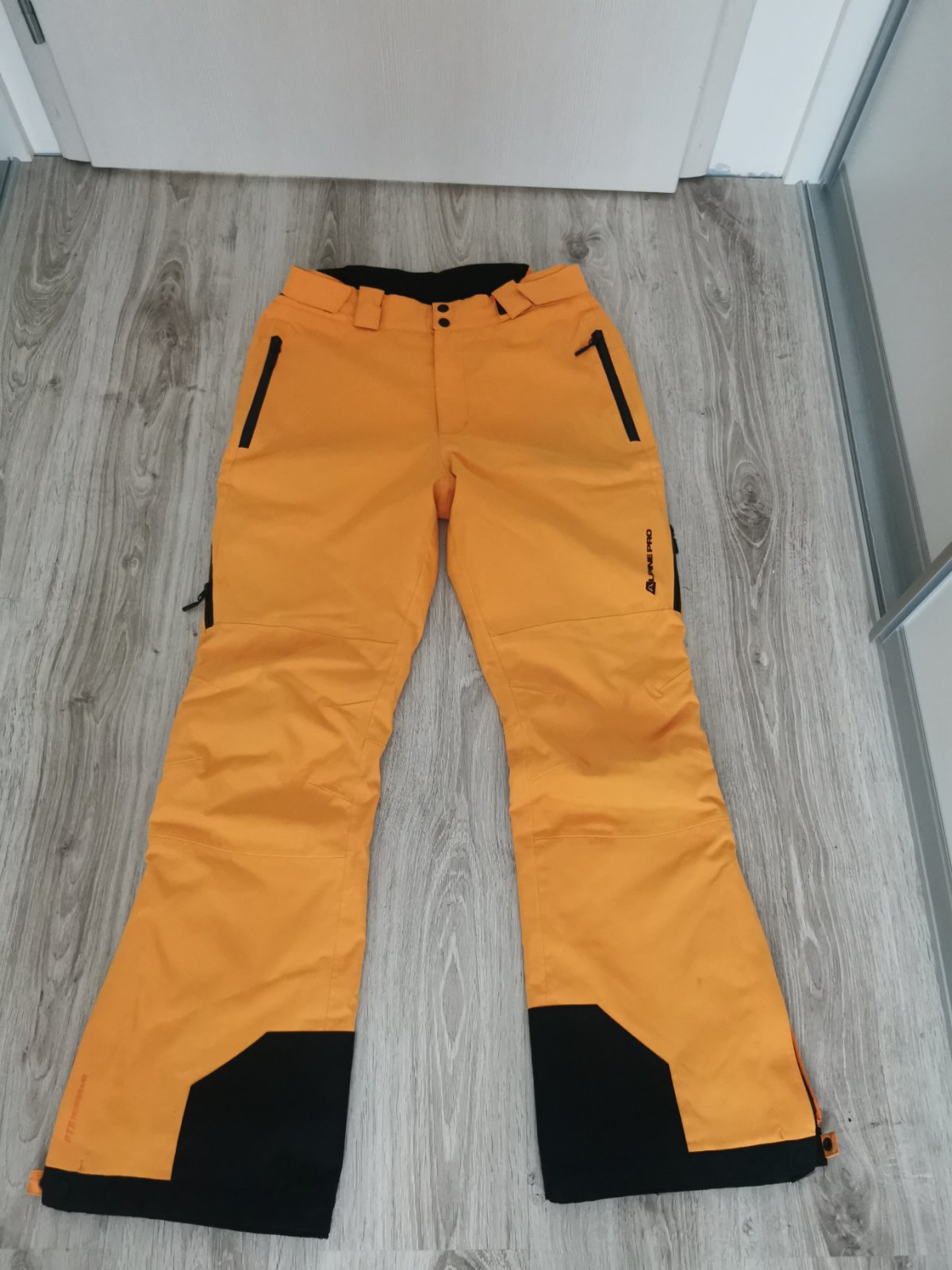Neprehliadnuteľné na svahu, 5000 vodný stĺpec, odopinateľné traky, maximálna funkčnosť 👌, vzadu sú jemne ošúchané z pomy, odrazené v cene 👍. Dĺžka nohavíc od pása 111cm, šírka v páse 48cm, regulovateľná opaskom Na suchý zips, príp aj klasickým športovým...
