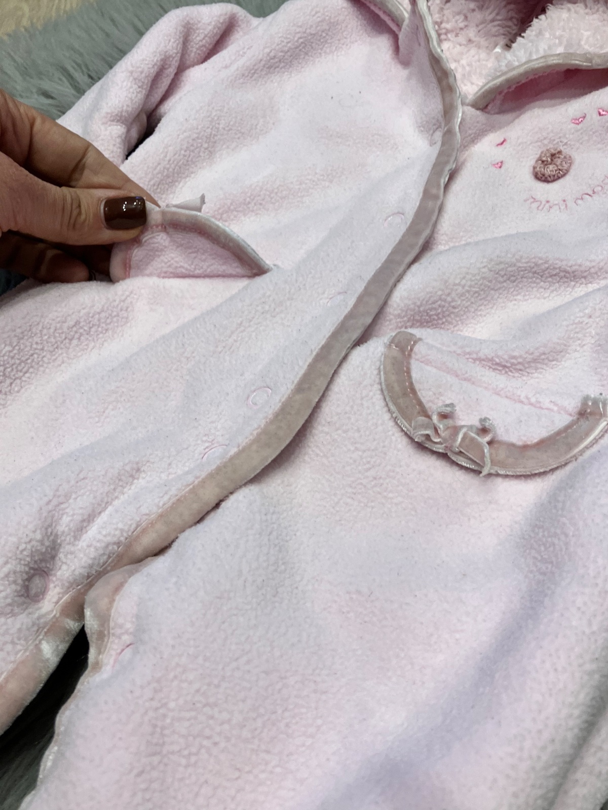 Dievčenský flísový overal s kapucňou, zimný, kapucňa s uškami, zapínanie na cvoky, elastický, materiál 100%polyester - 90%nylon 10%elastan.
