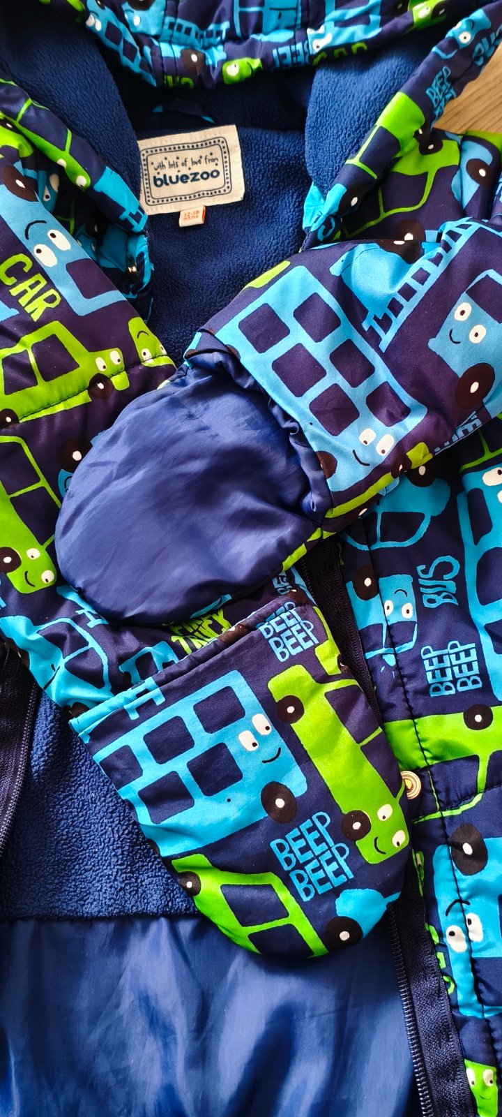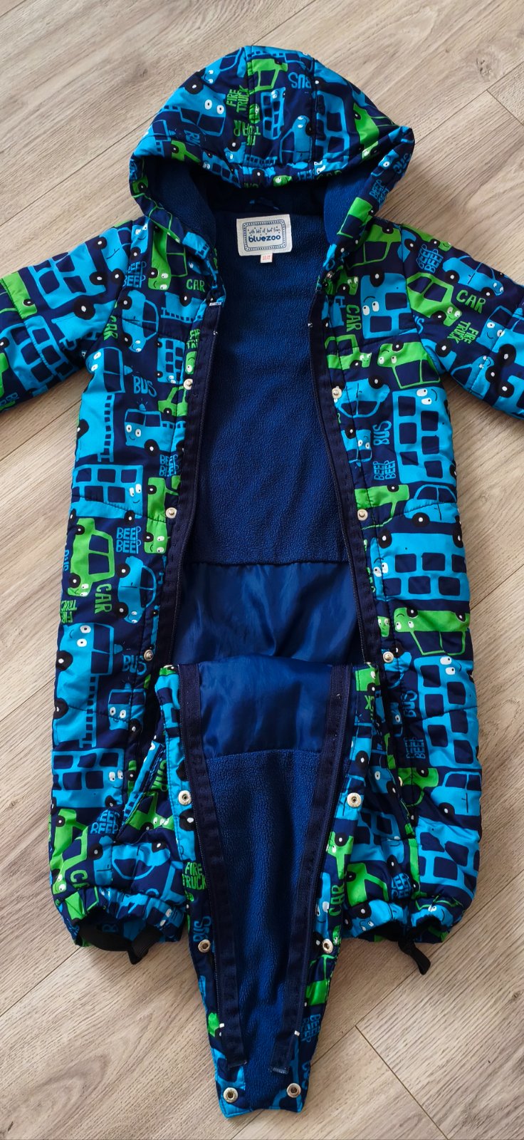 Overal na jeseň/jar alebo na teplejšiu zimu vo veľkosti 12-18 mesiacov (80/86). Má dva zipsy po celej dĺžke plus zapínanie na cvočky a možnosť založiť rukávy, aby plnili funkciu rukavičiek. Overal je používaný, bez závad, ako nový. Cena 3 € plus pošta alebo osobný odber.