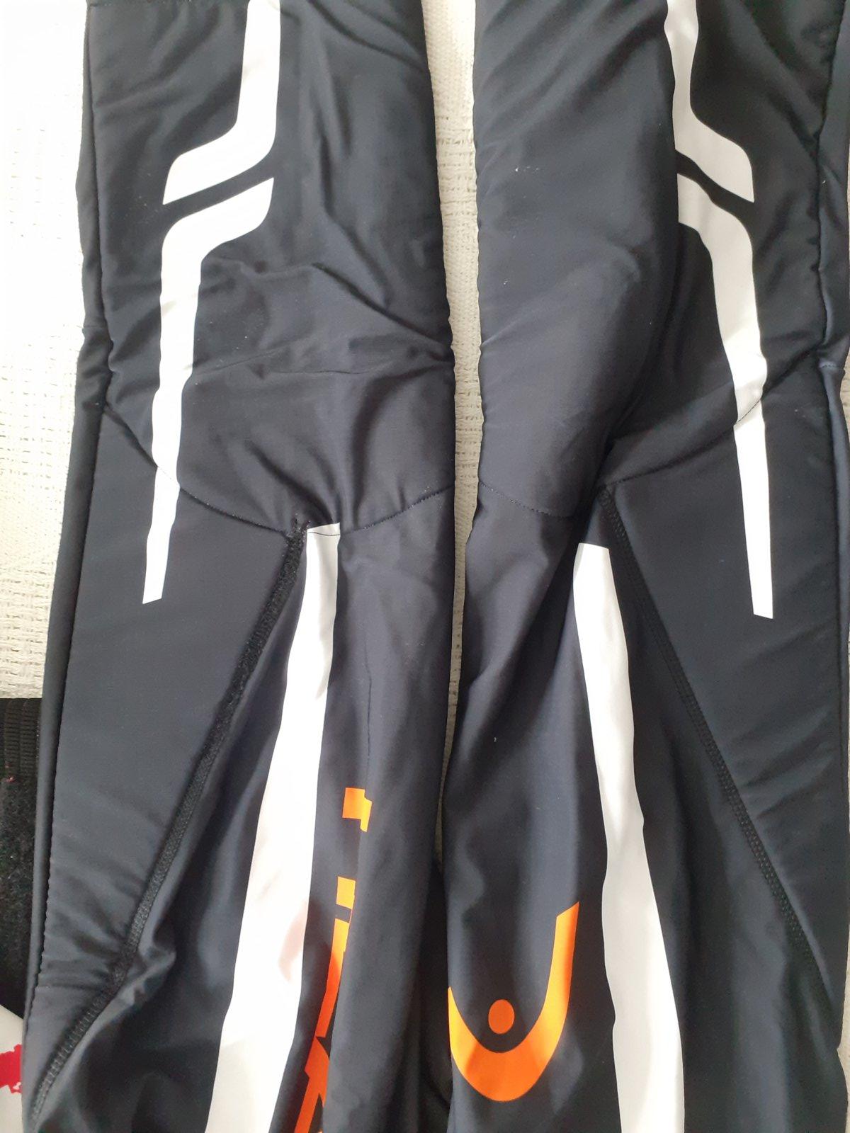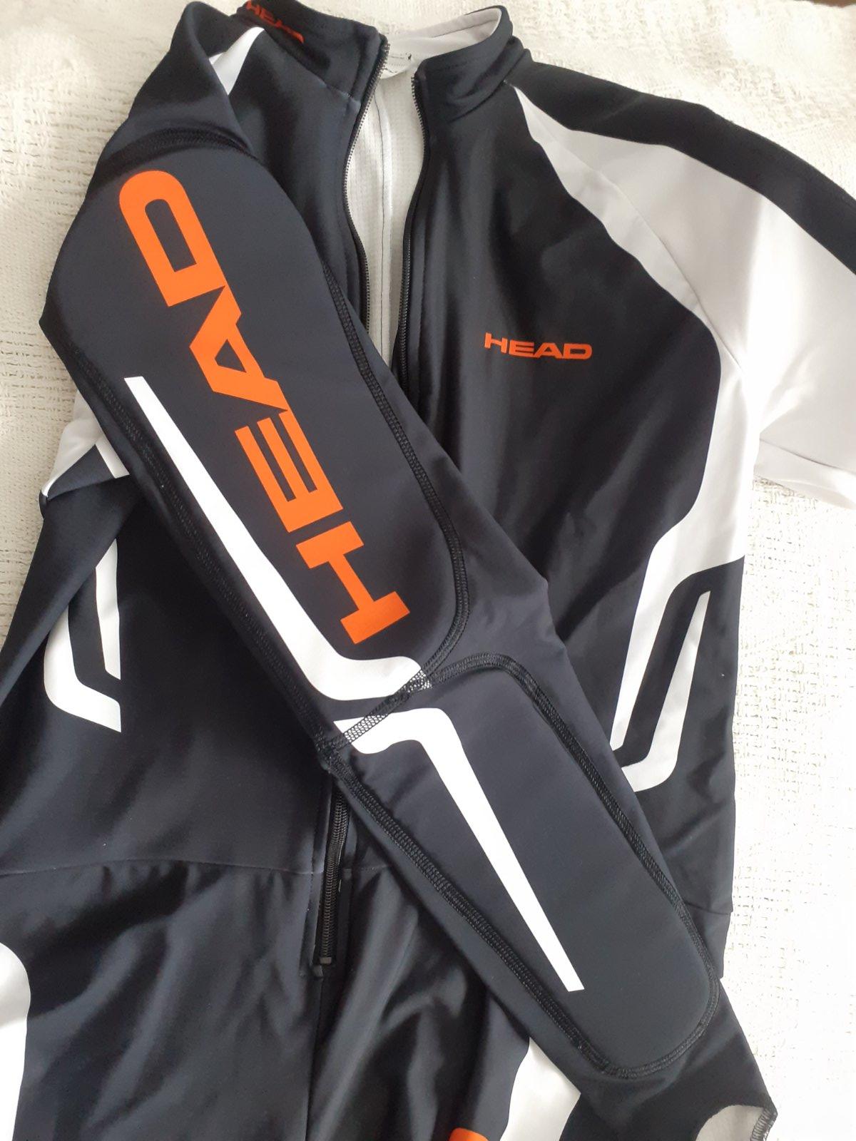 Kvalitná pretekárska kombinéza, dcéra ju mala len pár krát na pretekoch. Polstrovanie na rukách, stehnách, farby nevyblednuté, všetko funkčné.