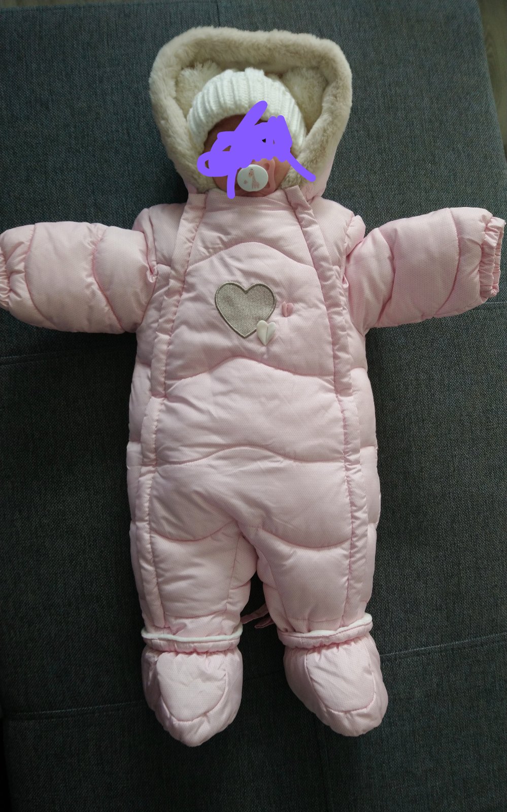Vo veľmi dobrom stave skoro ako nový. Veľkosť písaná 2-4 mesiace. Sú k tomu ešte aj rukavice k setu.