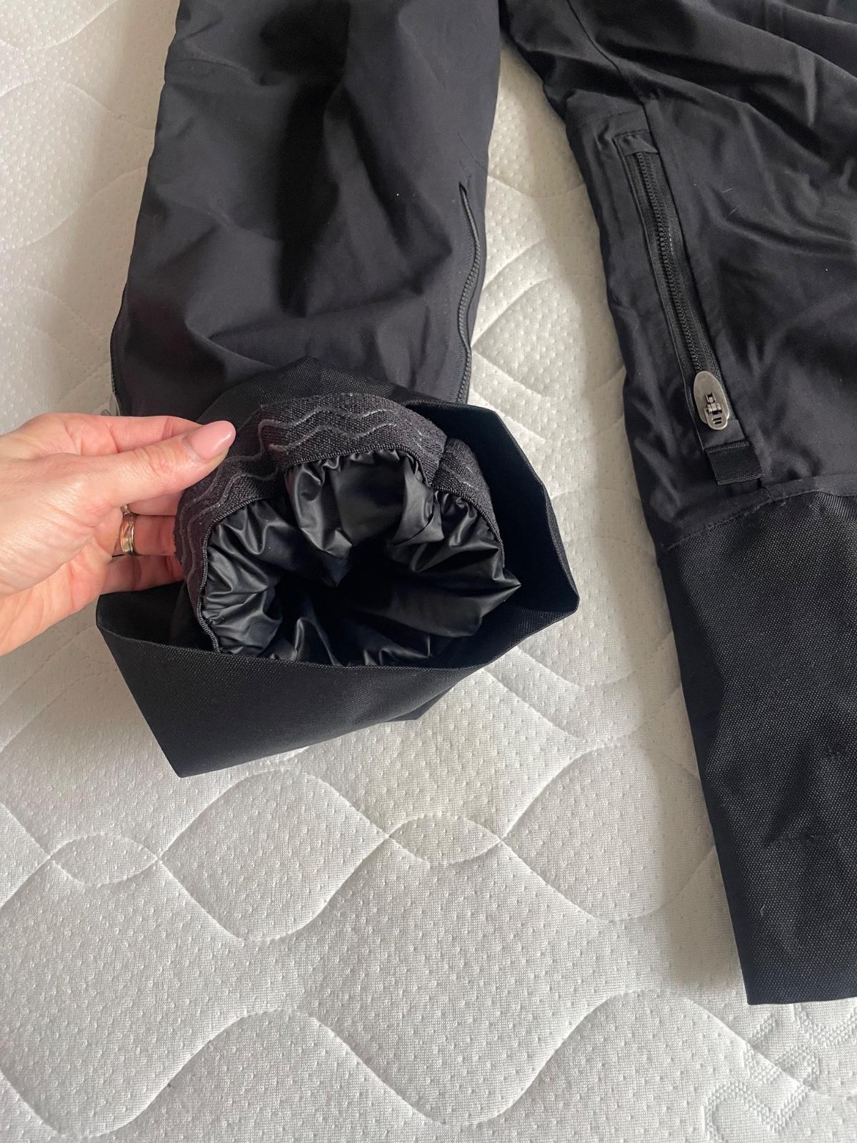 Otepľovačky vo veľmi dobrom stave, nosené len jednu sezónu. Možnosť pripnúť či odopnúť traky- na suchý zips. Pás tiež regulovateľný bočnými sťahovacími pásmi na suchý zips. Dĺžka sa dá evenuálne upraviť/skrátiť zatiahnutím zipsov, kedy sa nohavica dole mierne nariasí. Menšie šuchance na spevnenej látke v spodnej časti- vnútorná strana nôh. Vodný stĺpec 10tis. Rozmery na foto.