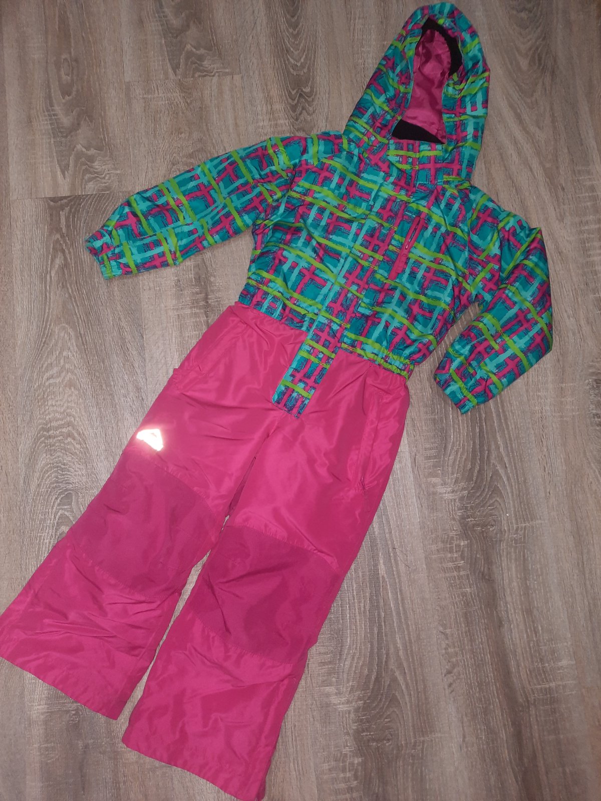 Zimná nepremokavá kombinéza s elastickým pásom. Rukávy sú zakončené elastickou manžetou. Zapínanie na zips a gombíky, šírka sa dá upraviť pomocou gombíkov vnútri obleku. Na prednej strane je vrecko...