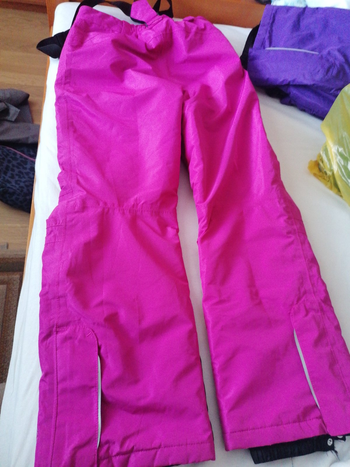 Oteplovaky 2kusy kupovane v Lidli bez poškodení fialovej aj ruzovej farby, majú dole na nohách zábrany voci snehu aj zipsy. Majú traky na suchý zips. Rozmery sú celkova dĺžka 98cm, dĺžka od rozkroku 68cm, šírka v páse 2x39cm. Cena je bez poštovného.