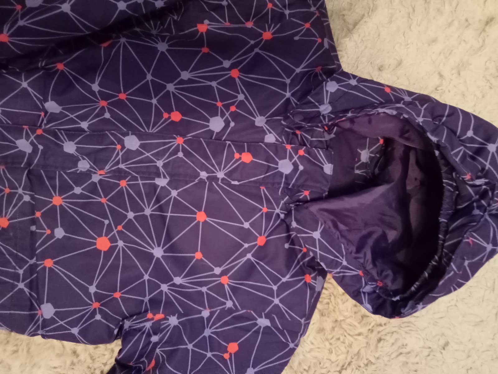 Nosená,má za sebou 2 sezóny.Kolená vyblednuté a mierne aj zadok.Rukávy majú tiež ošúchance.PC cca 100€,na sánkovačku ešte poslúži.128/134