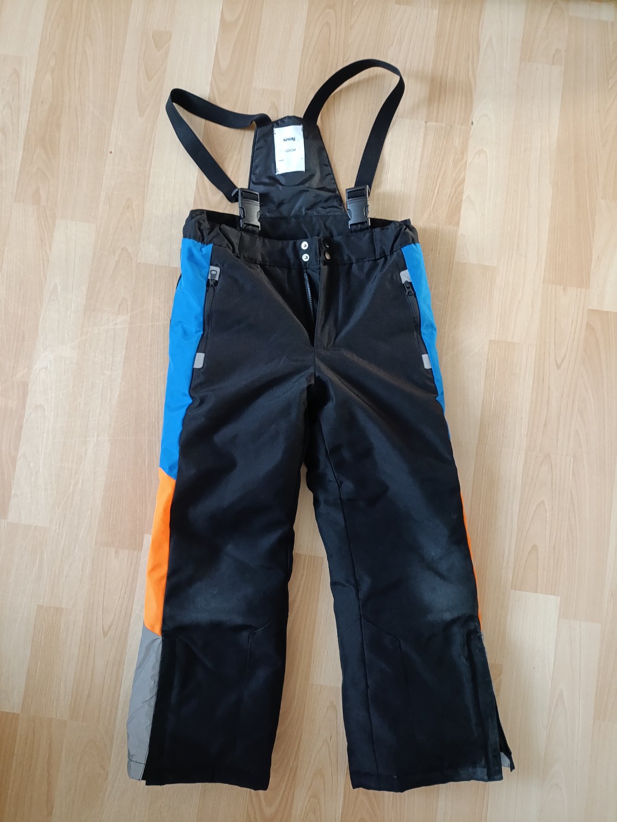 Predám chlapčenské oteplovačky čiernej farby. Malé roztrhnutiu na kolene je zašité a prekrytě nažehlovačkou.