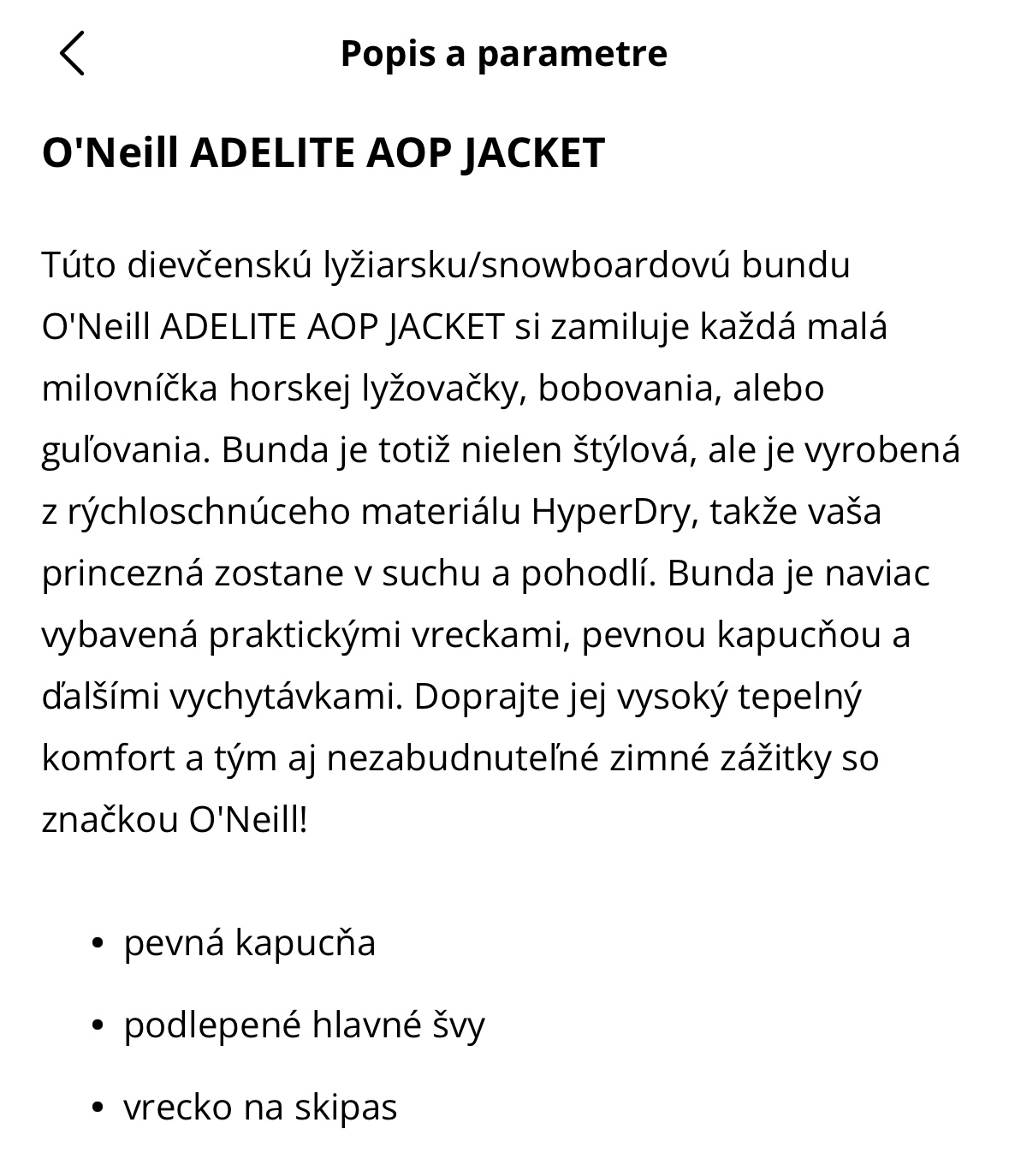 Predám krásnu nenosenú lyžiarsku súpravu v.176 značka O'Neill vhodná aj ako v.XS