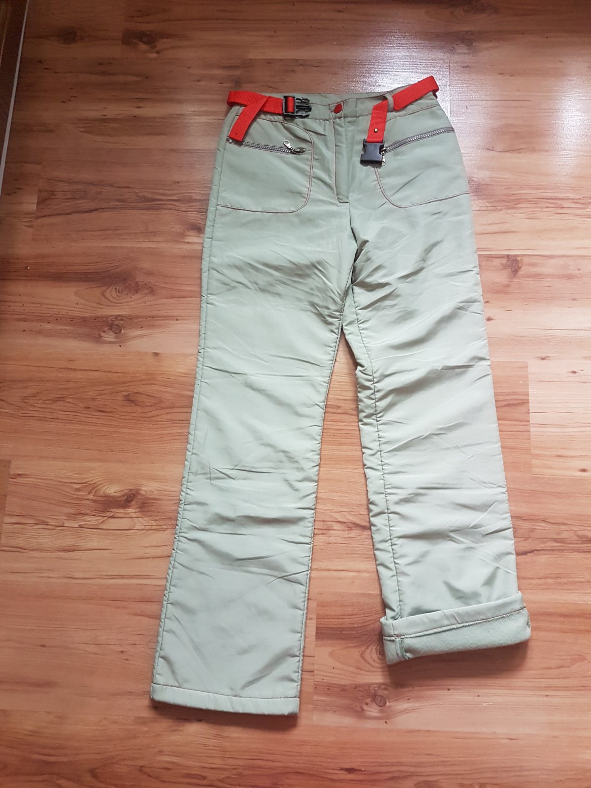 Oteplené ,výborný stav,opasok sa dá vybrať a použiť aj na iné nohavice.kuk celý moj bazárik.pás-38x2,dlhé-106 cm,vnútorná dĺýka 78 cm.