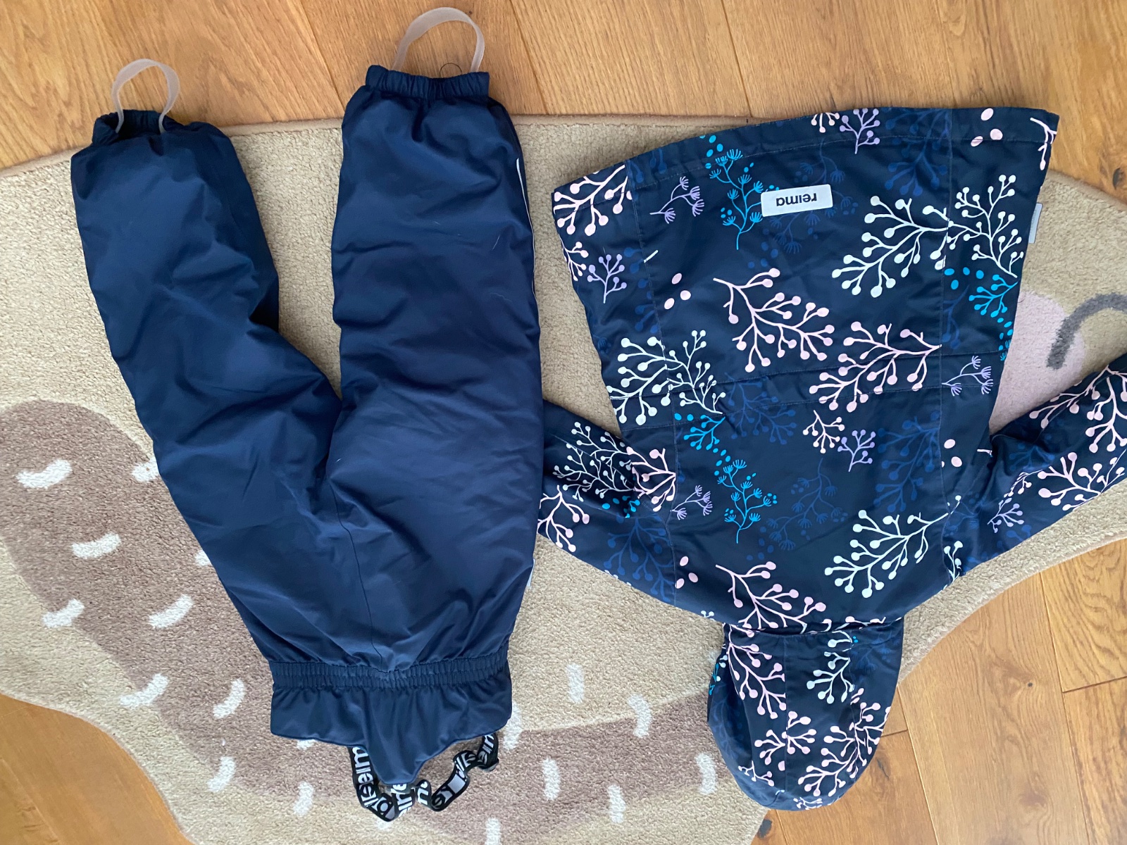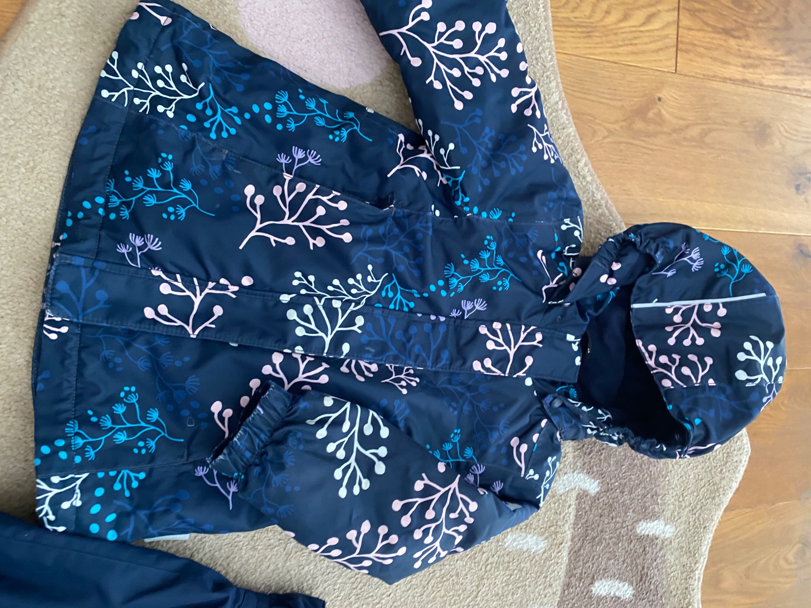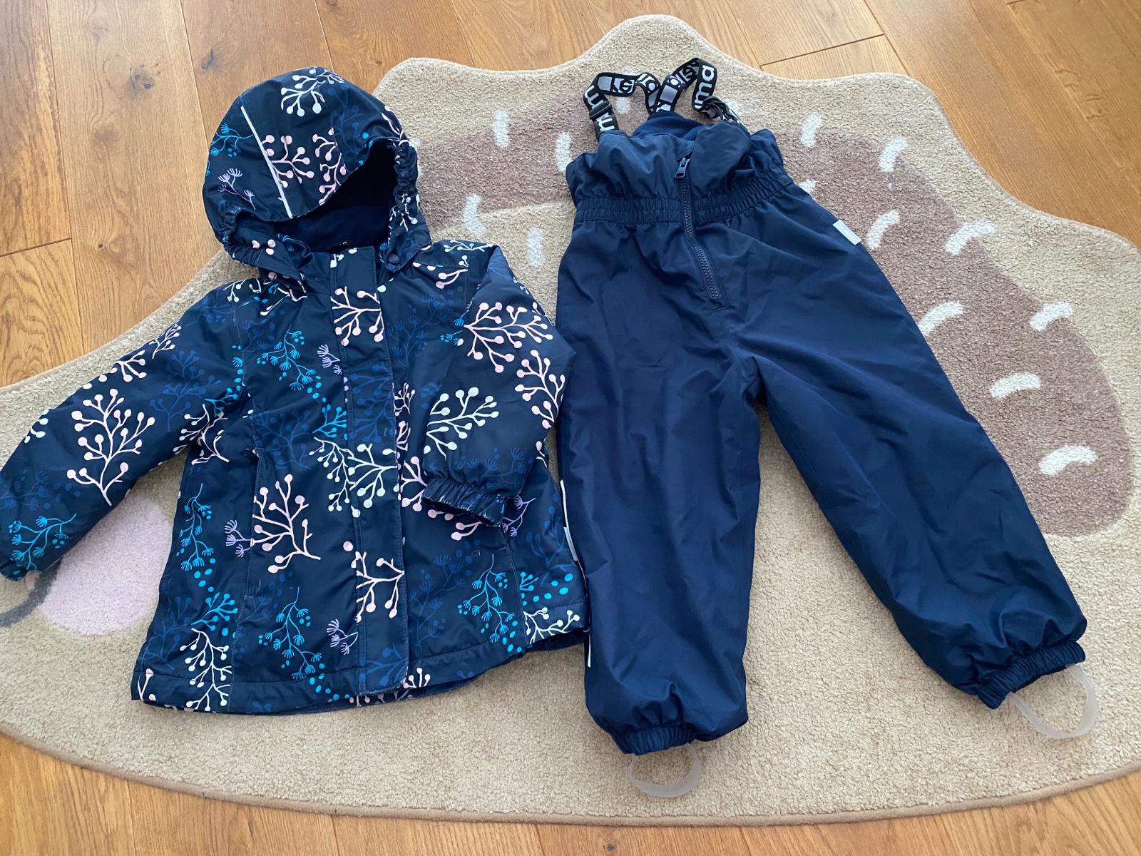 veľmi dobrý stav, celá súprava sedí na 98 a 104, otepľovačky ako nové, bunda viac nosená, ale stále veľmi dobre