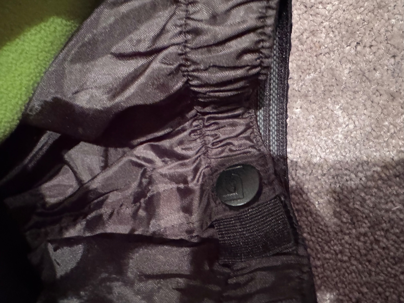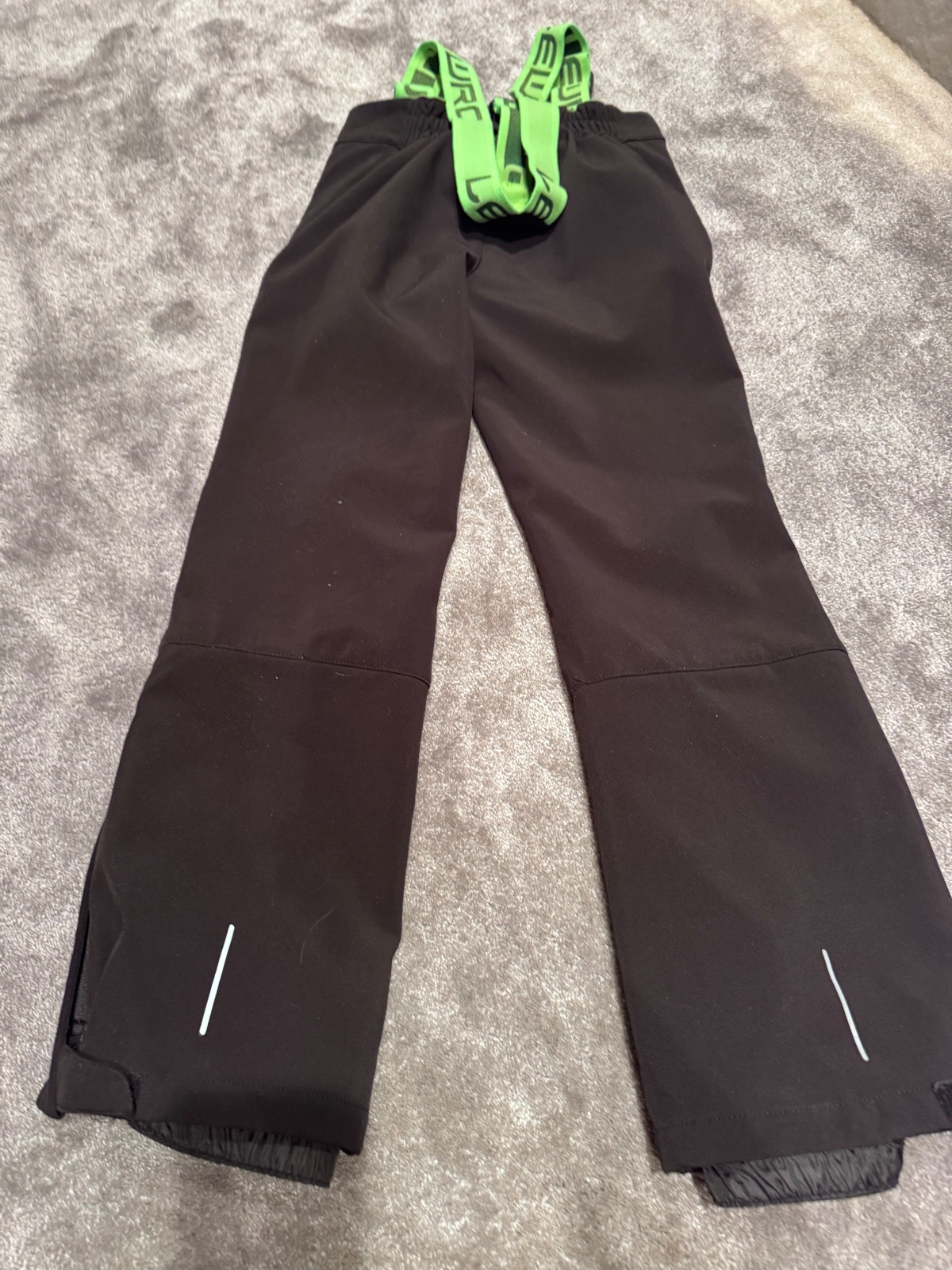 Bez poškodenia, max 3x oblečené na prechádzku von, hneď z nich vyrástol. traky sa dajú úplne odopnut. Dĺžka 90cm