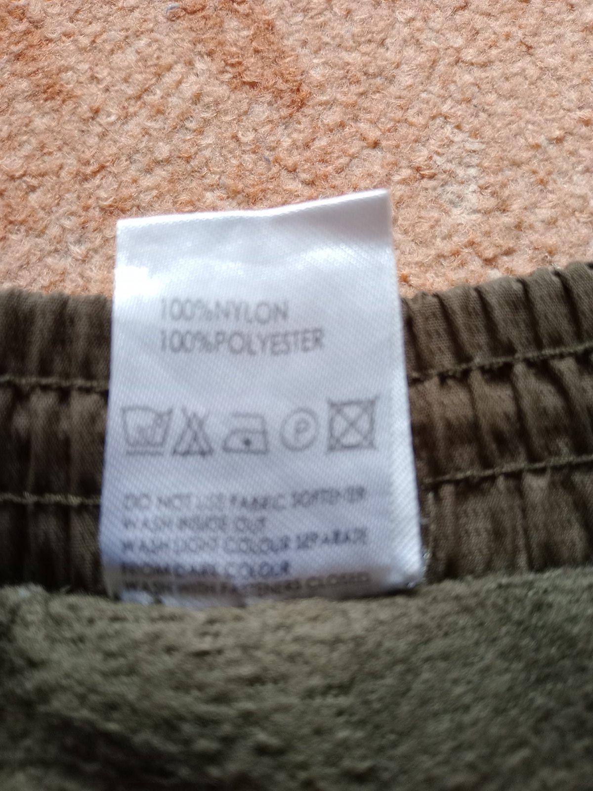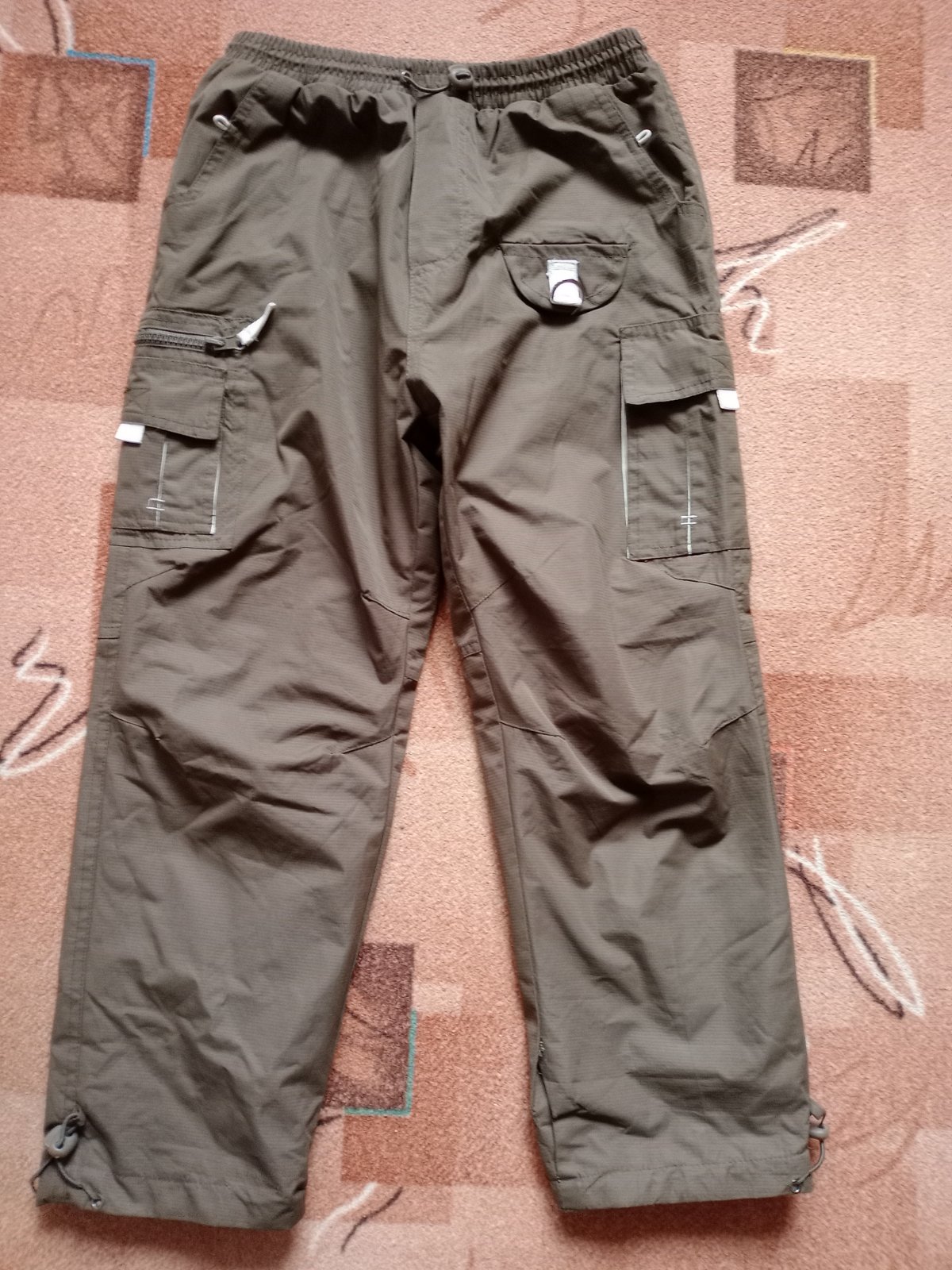 Super nepremokavé pohodlné otepľovačky, v páse na gumu a dá sa ešte stiahnuť, aj na spodu nohavice sa dajú stiahnuť , zateplené flisom...celková dĺžka 83cm. Ľavú nohavicu treba zažiť, šitie sa rozparalo- viď posledné foto.