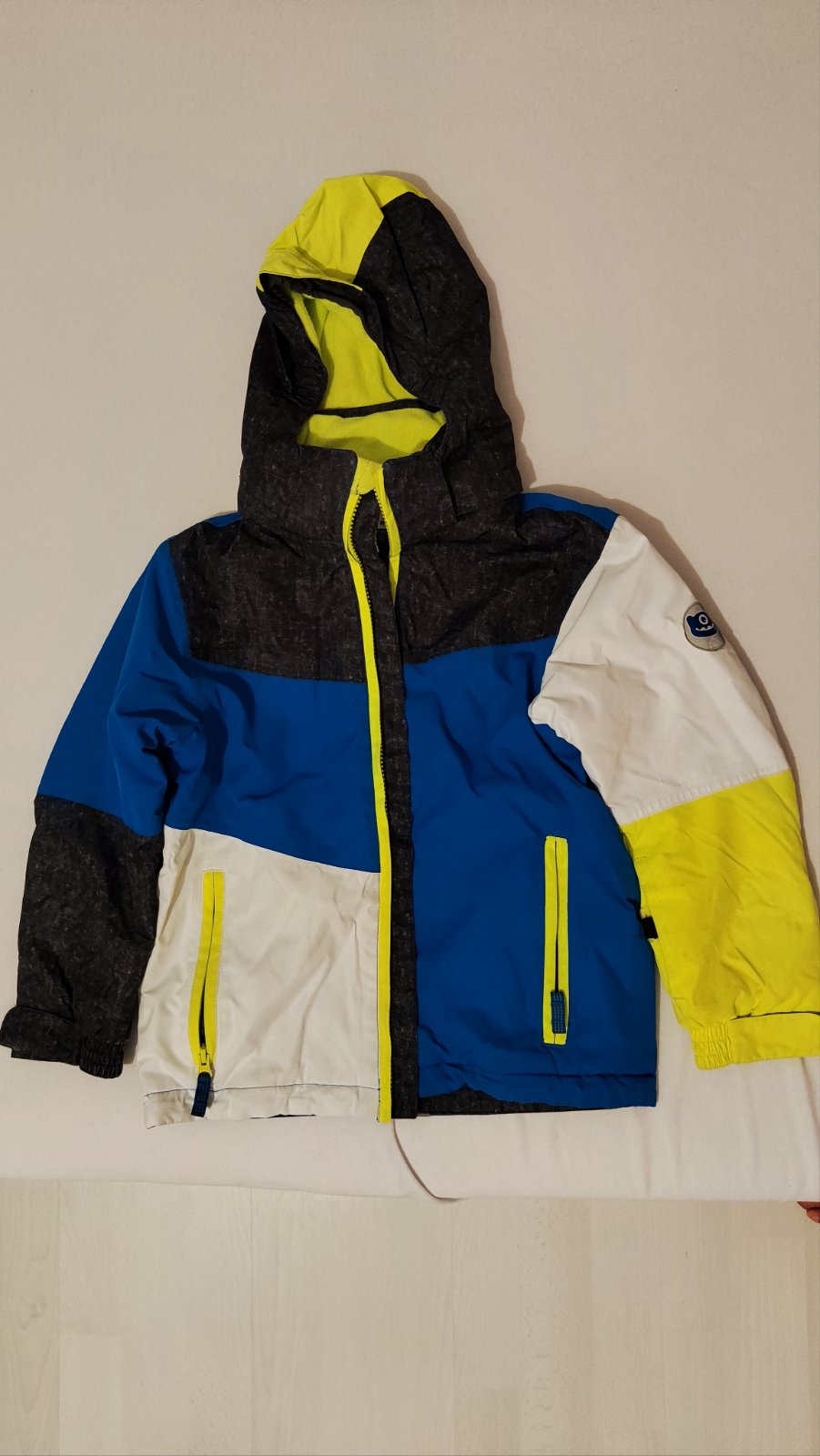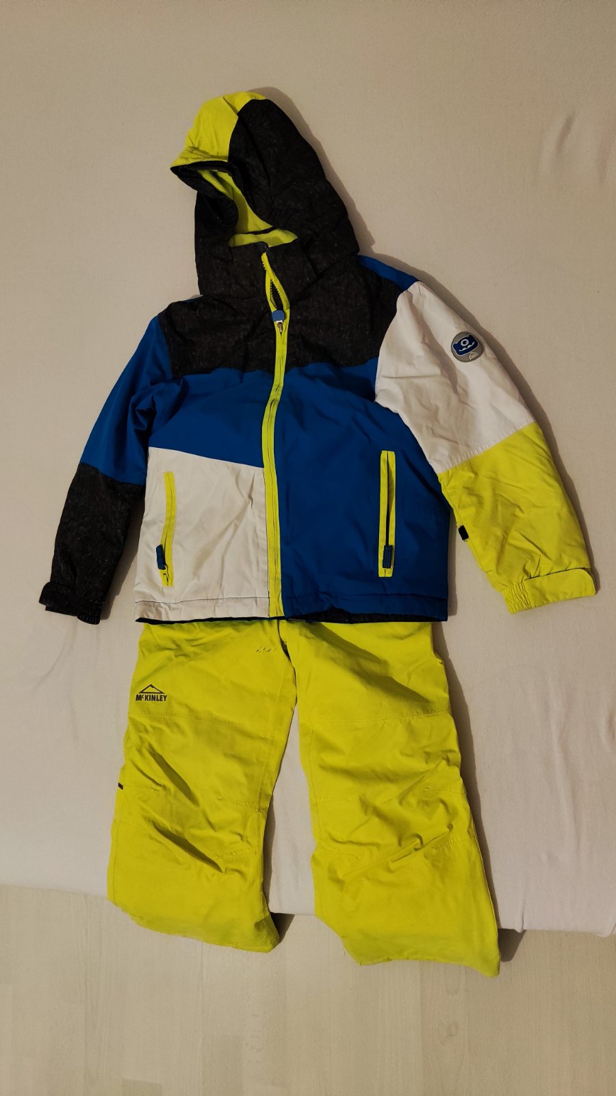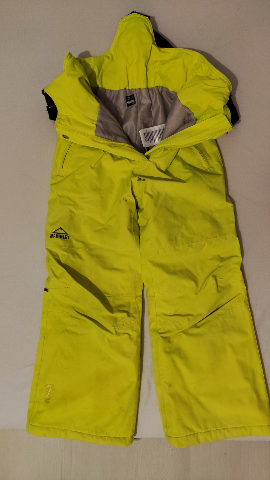 predám lyžiarsku súpravu c.128, veľmi dobry stav, na oteplovackach sú fliacky medzi nozkami od vleku, ale pri nosení to nevidno, otepľovacky sú krikľavo žltej farby, bunda je viac farebná čierna, žltá, modrá, žltá