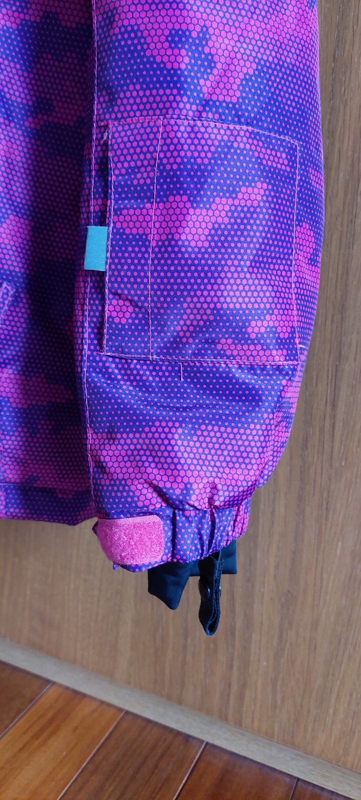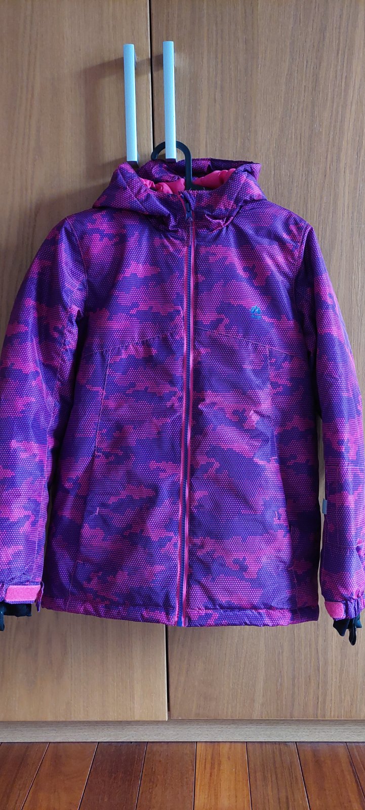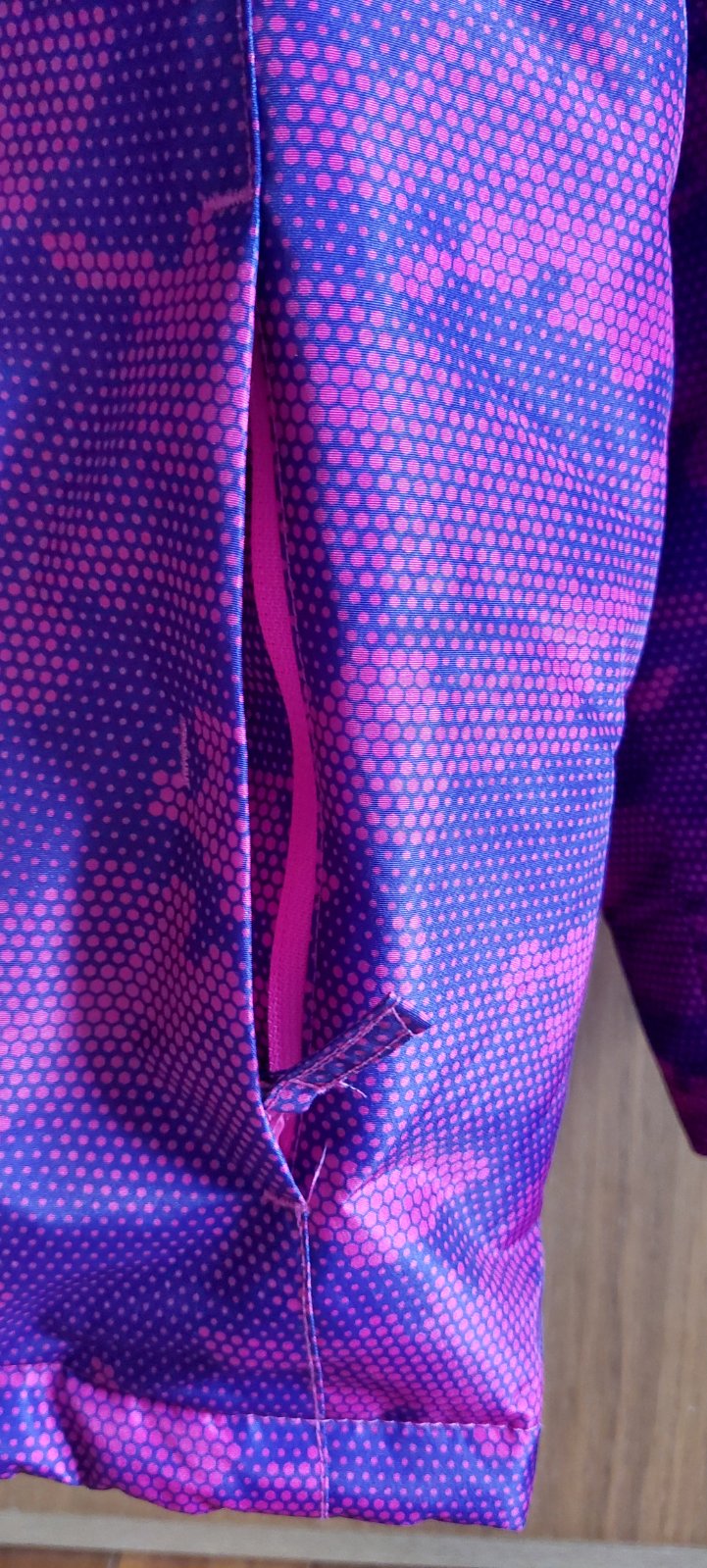 Lyžiarsky komplet pre kočku, bunda má vrecká na zips, snežný pás, manžety v rukávoch, gumky v rukávoch, na ktoré sa dajú pripnúť rukavice, vrecko na skipass, oteplovačky majú odopínateľné traky. Komplet použila dcéra na dvoch lyzovačkách, je bez chyby, takmer ako nový.