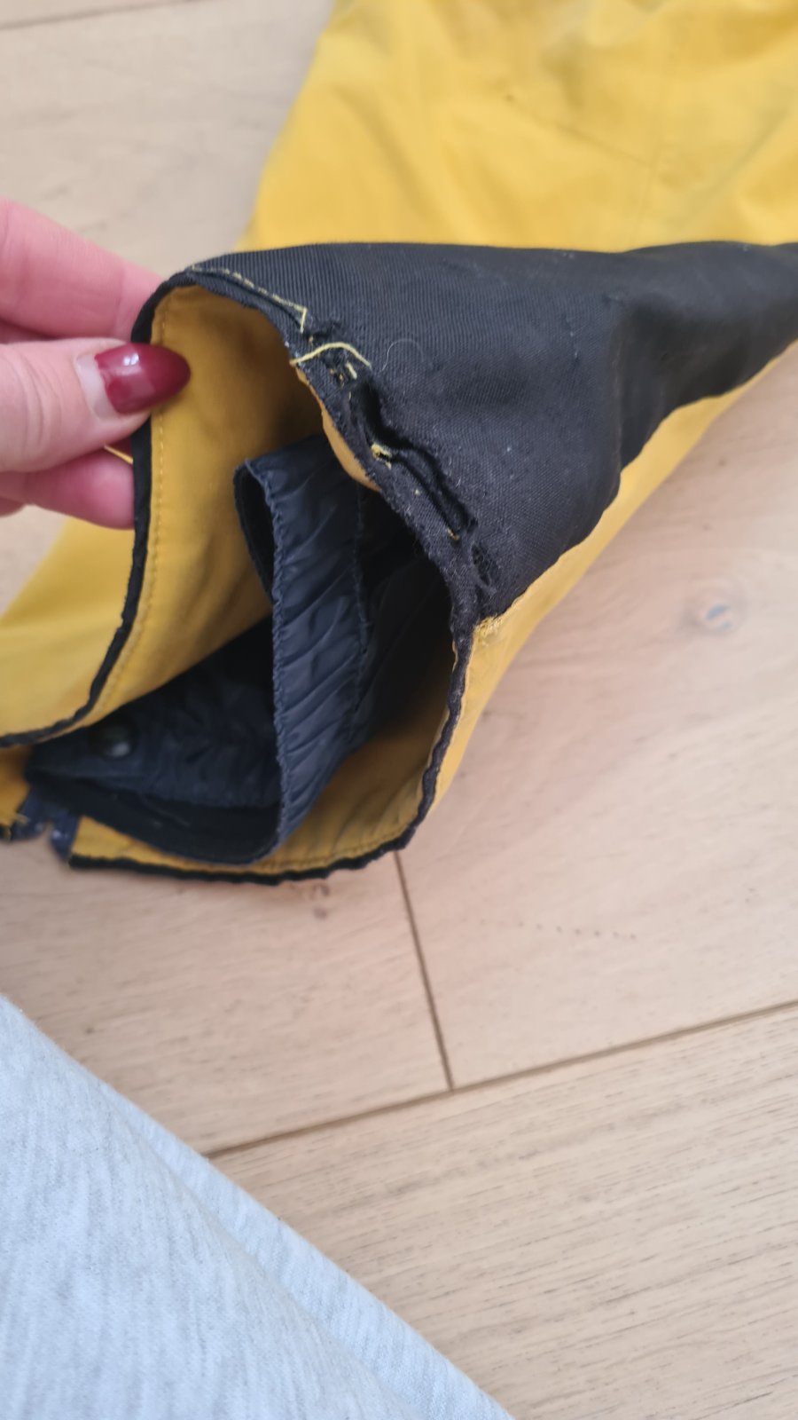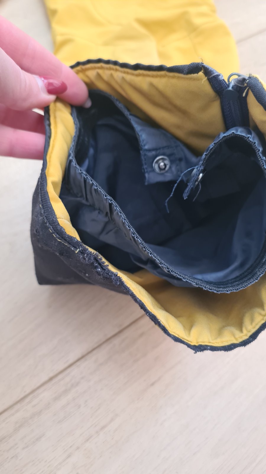 Horcicovo zlta, plne nositelne, spodky oteplovakov su zosuchane od lyziarok,
