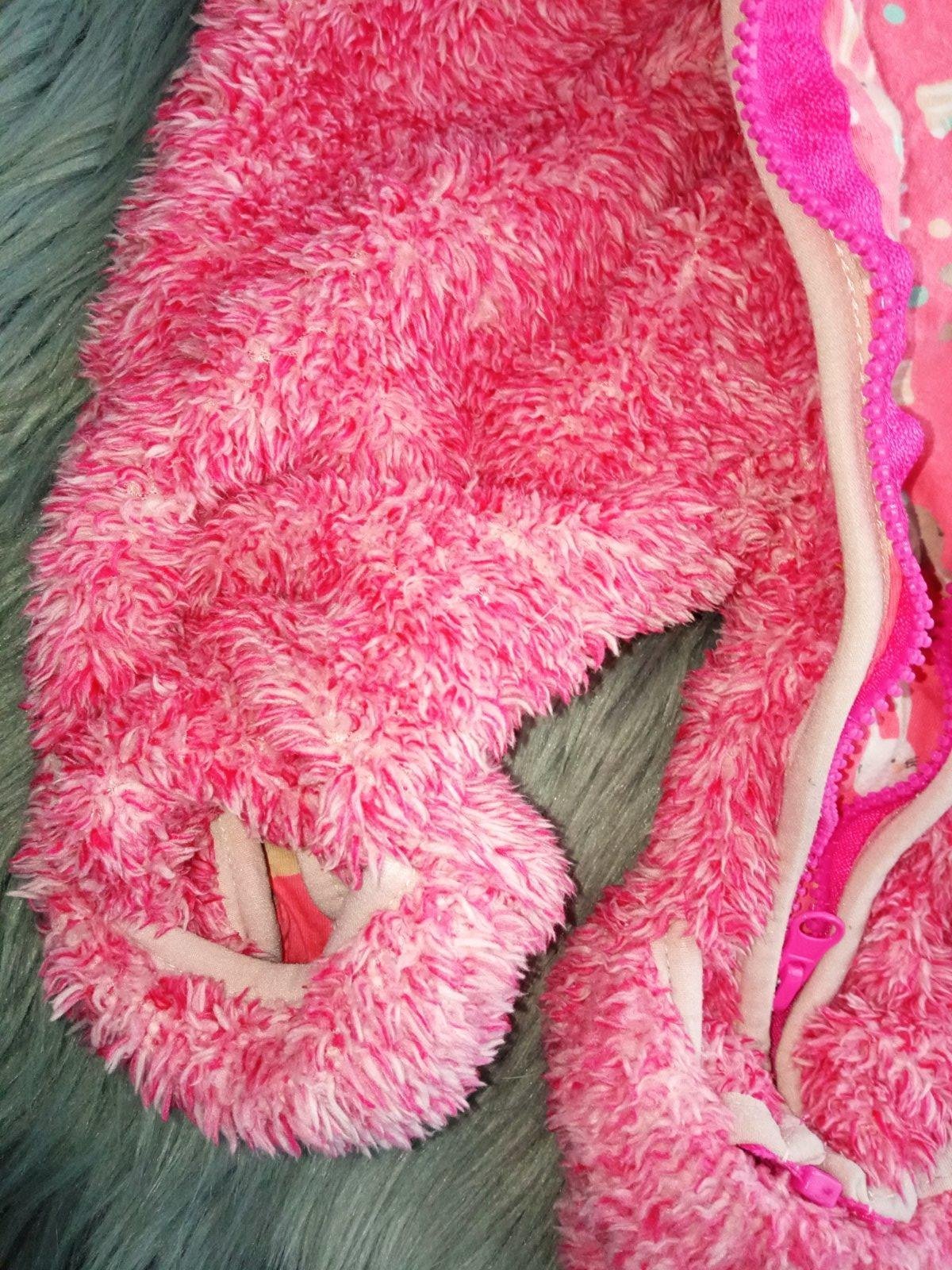 Dievčenský zimný overal, huňatý, s kapucňou, zapínanie na zips, materiál 100%polyester.