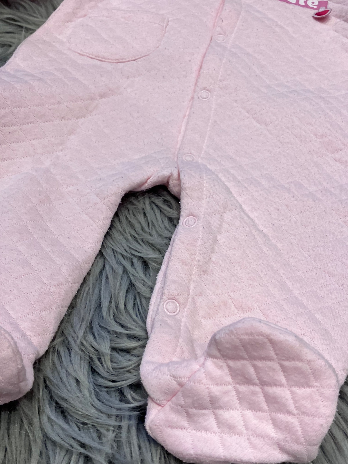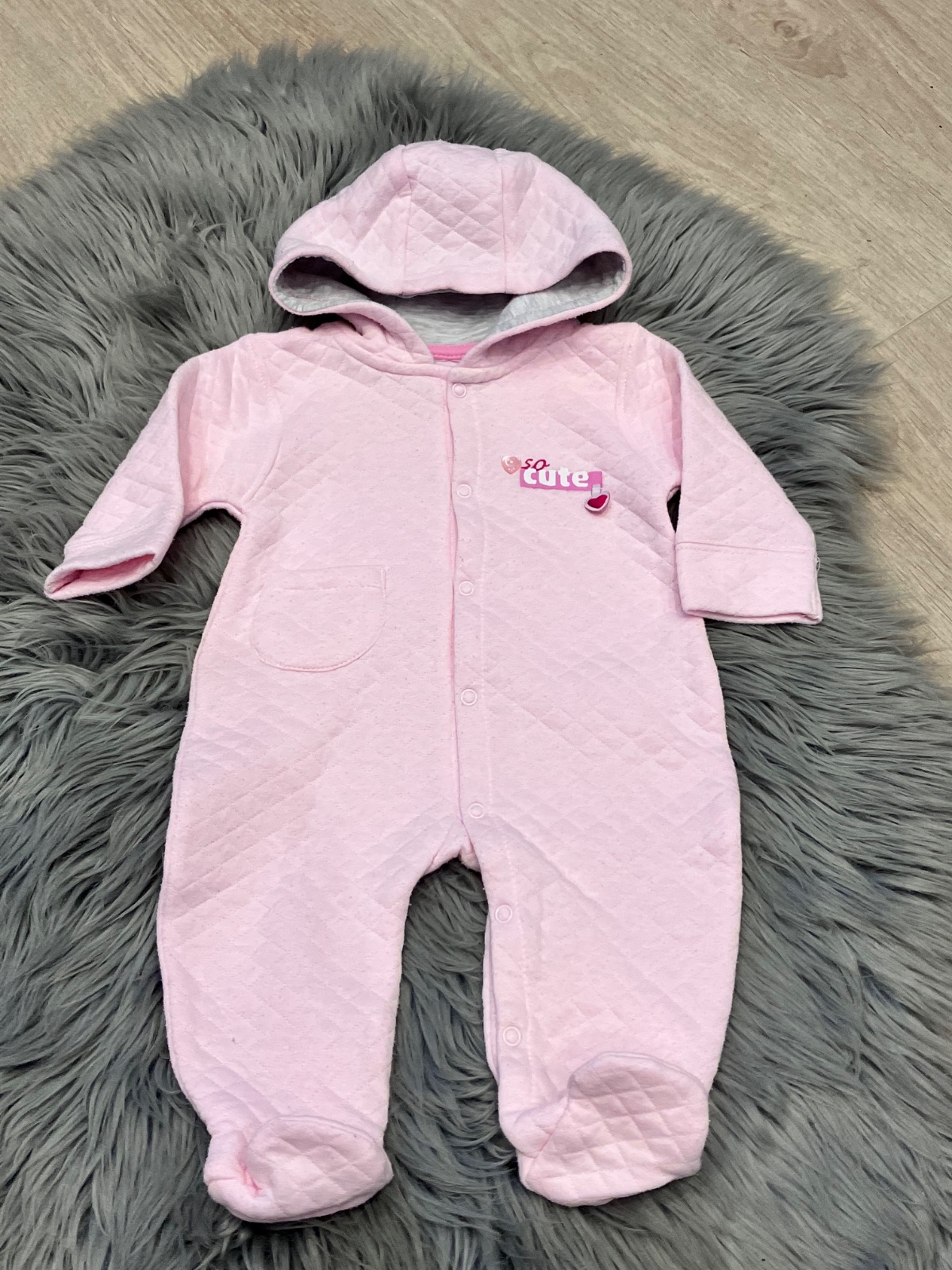 Dievčenský overal s kapucňou, tenký, zapínanie na cvoky, elastický. Veľkosť cca 56.