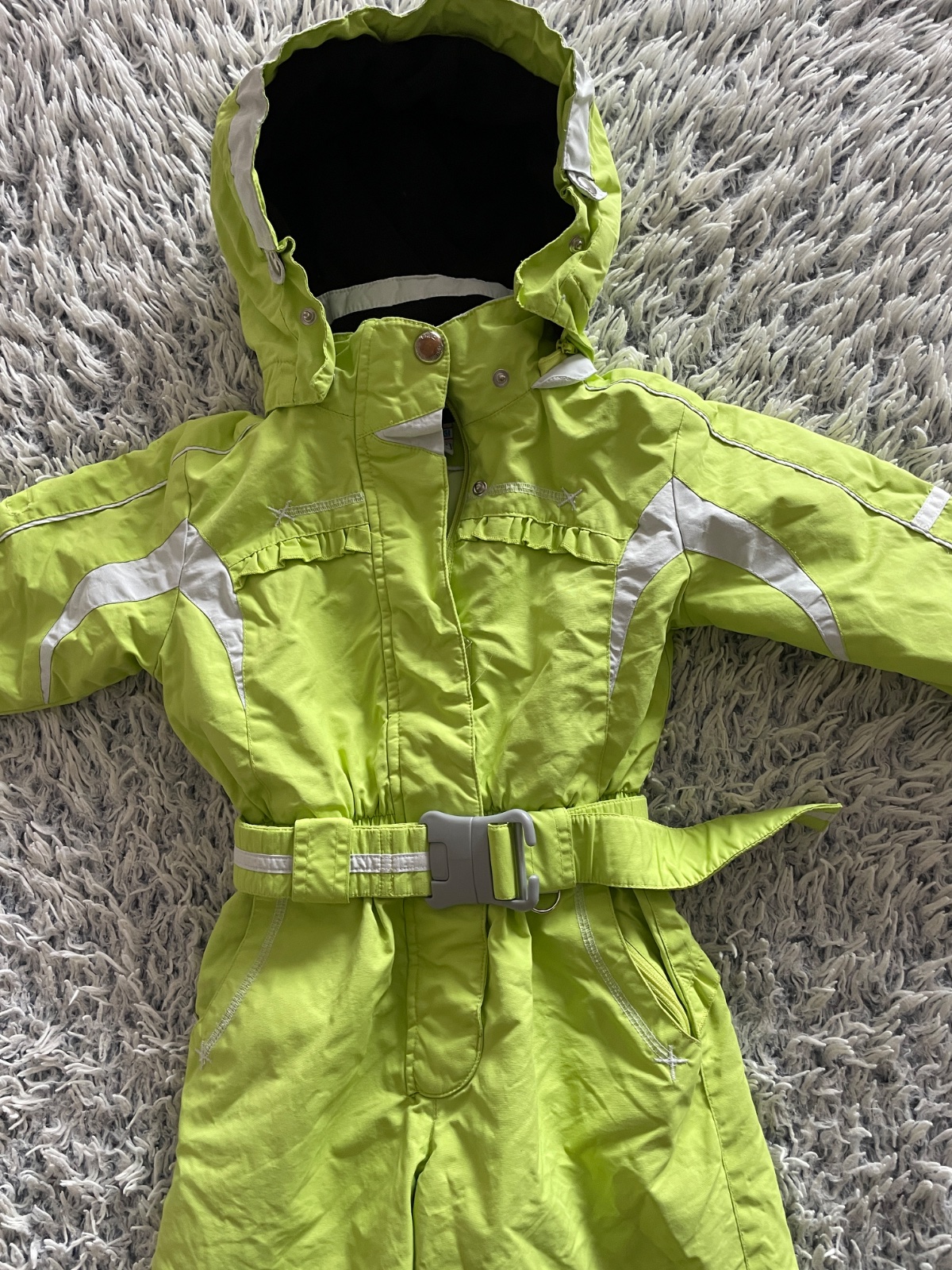 Celková dĺžka 91,od rozkroku 42,5cm.Rukav od krku 43,5cm. Znacka Brugi.Veľkosť 98/104.
