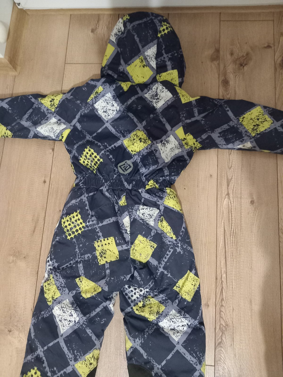 Zimná nepremokavá kombinéza s elastickým pásom. Rukávy sú zakončené elastickou manžetou. Zapínanie na zips a gombíky, šírka sa dá upraviť pomocou gombíkov vnútri obleku. Na prednej strane je vrecko...