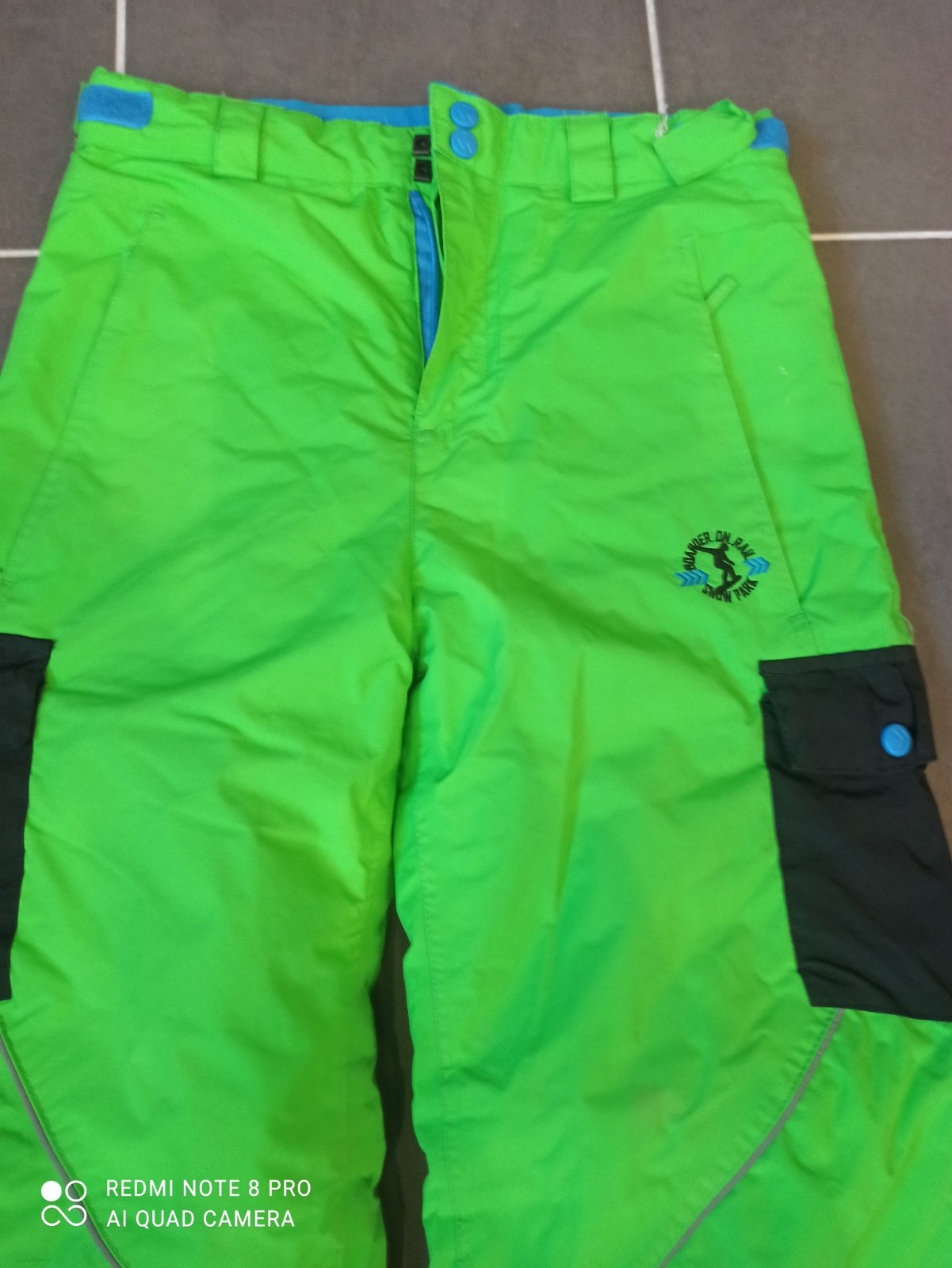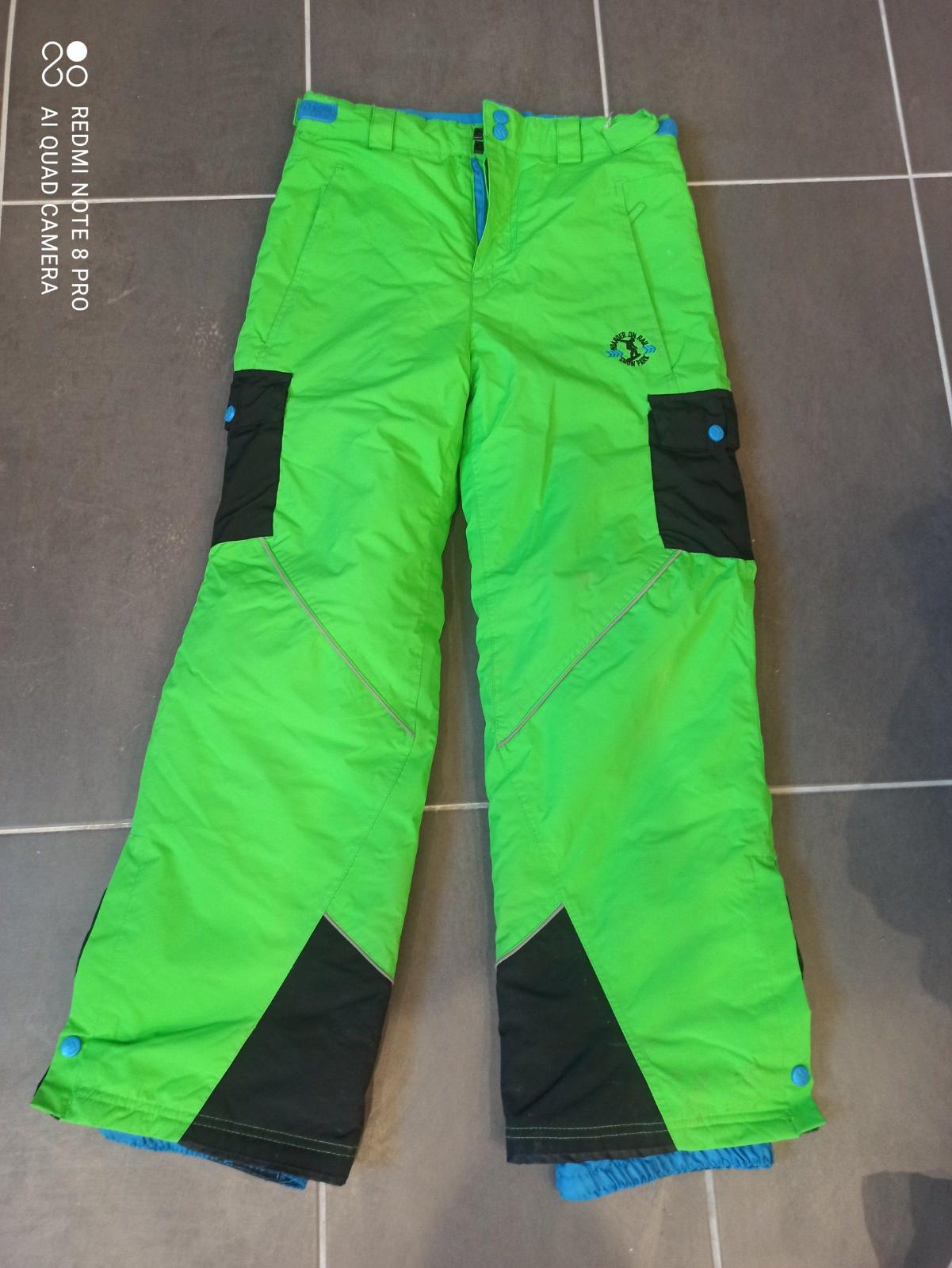 Neónovo zelene krásne oteplovaky, plne funkčné, reflexné prvky, guma proti snehu, vrecká, nastaviteľný pás, 2 gombíky ,teplé ,