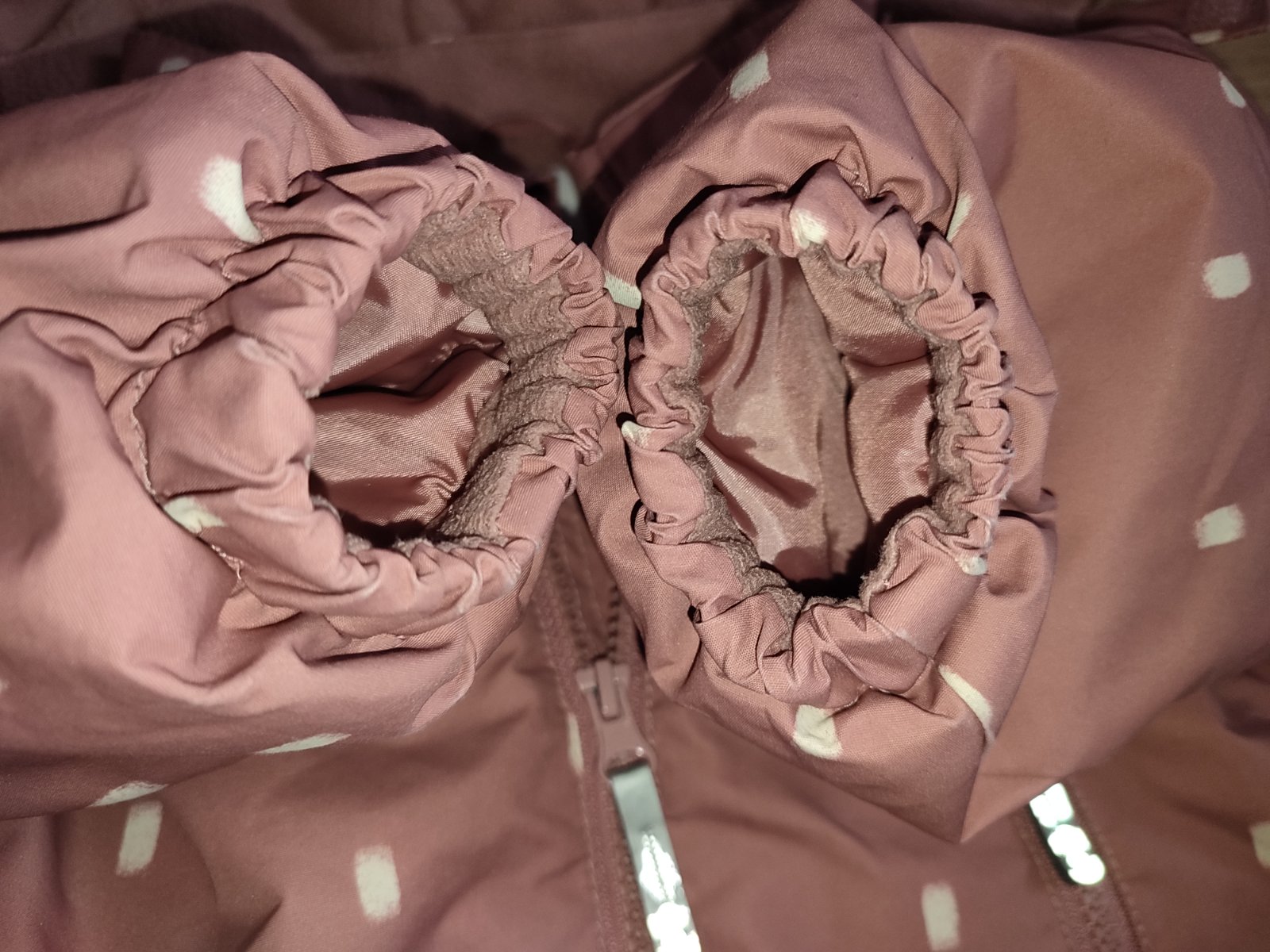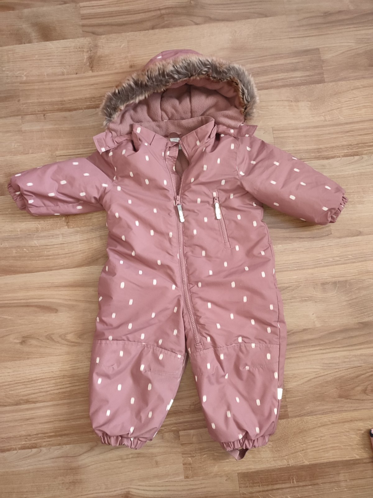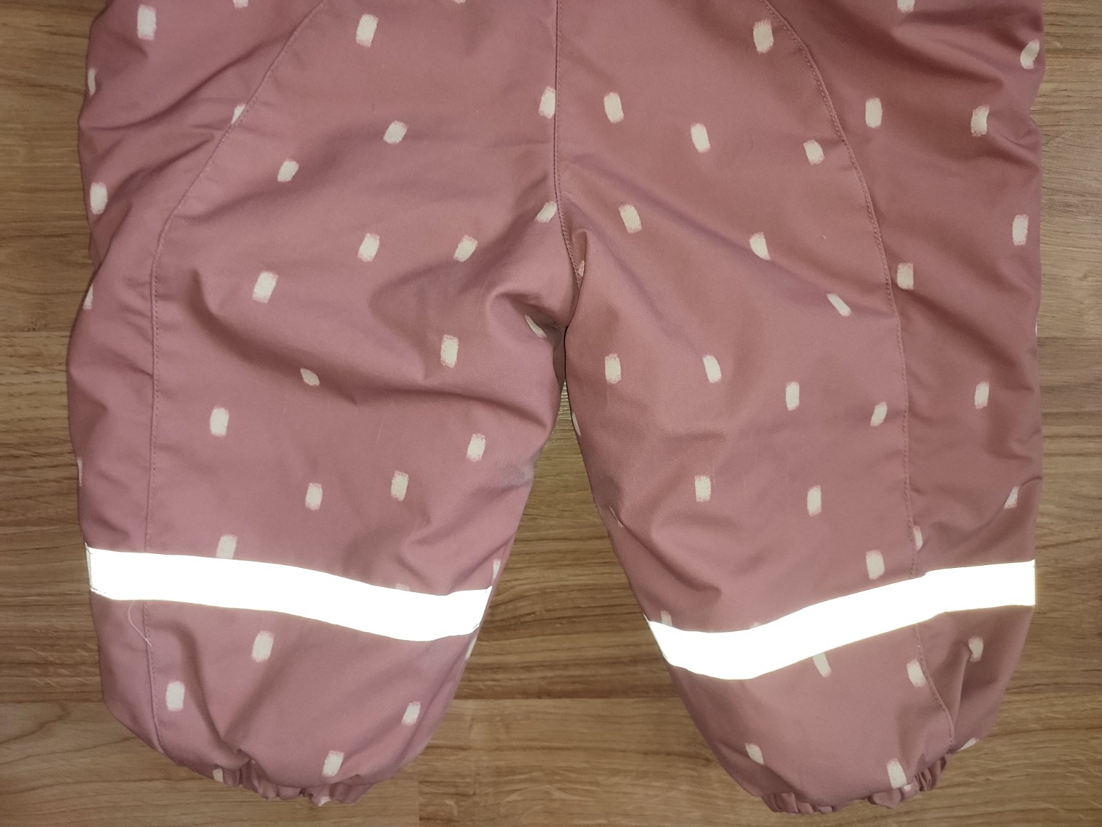 úžasne teplý zimný overal, nepremokavý, farba staroružová, kupovaný nový bol nosený pár krát cez zimu no malej sa podarilo trochu šuchnúť na spodu gumičky a medzi nôžkami čomu sa nedá pri nosení zabrániť viď foto pri nosení to nie je ani vidno keďže je to z vnútornej strany inak nemá žiadne fľaky diery ani iné poškodenia, nie je vydratý.