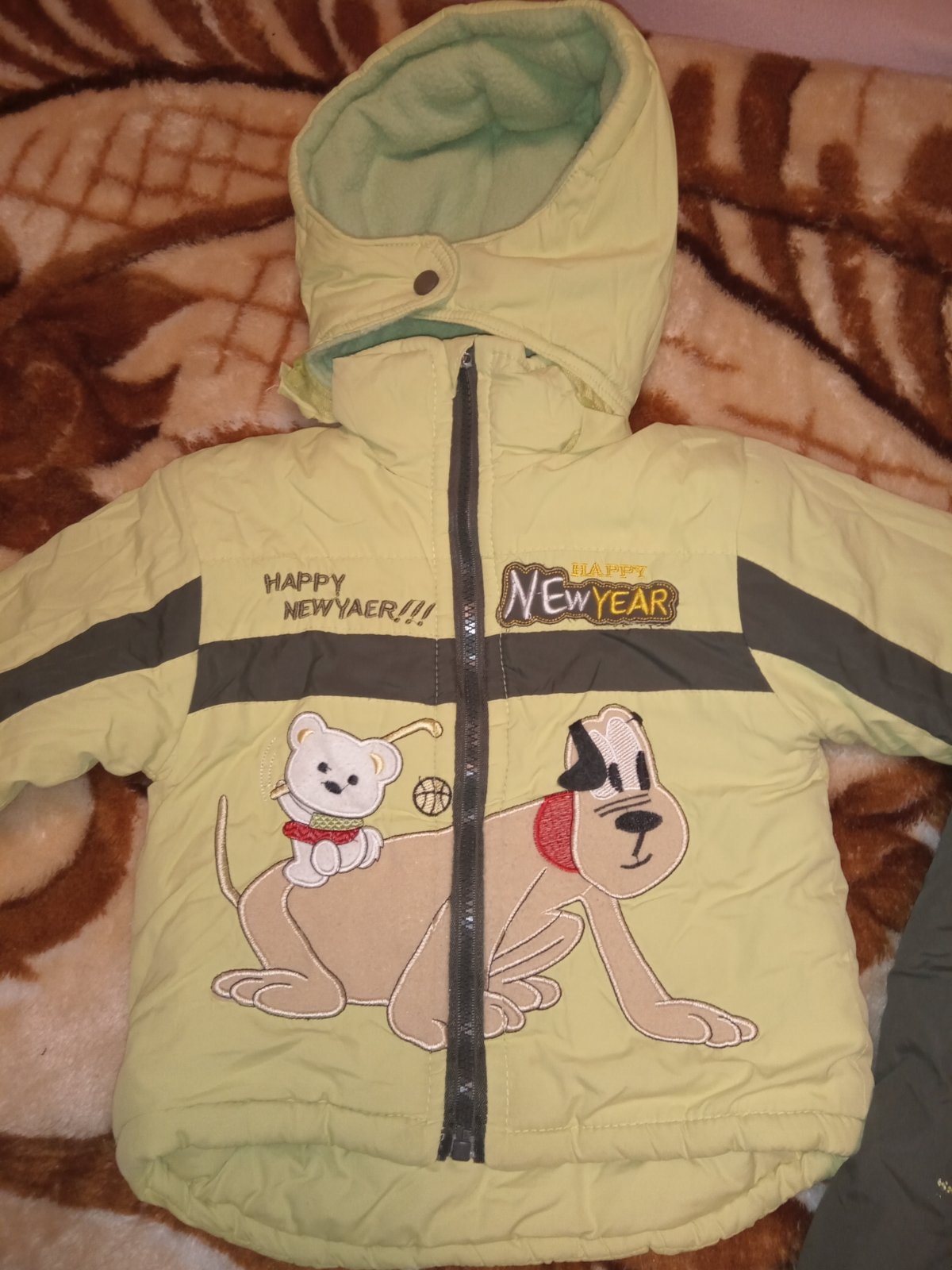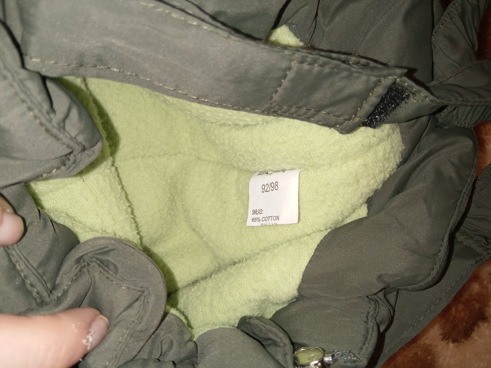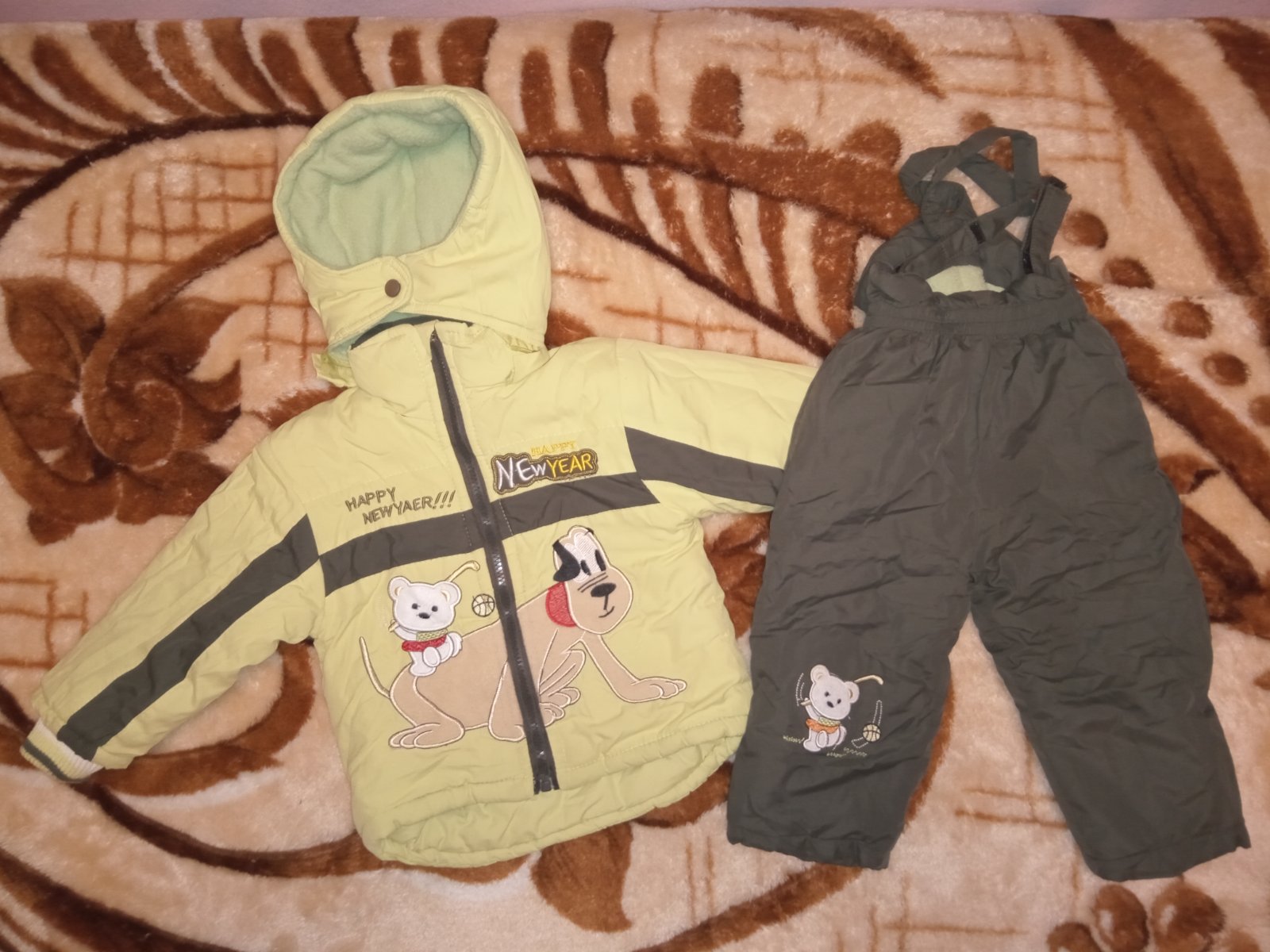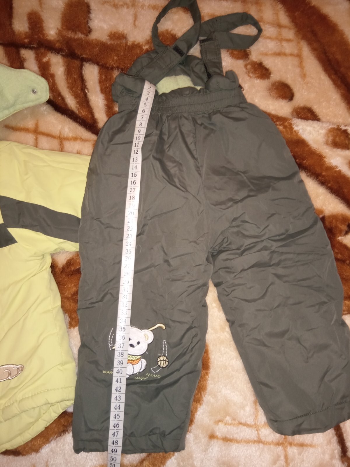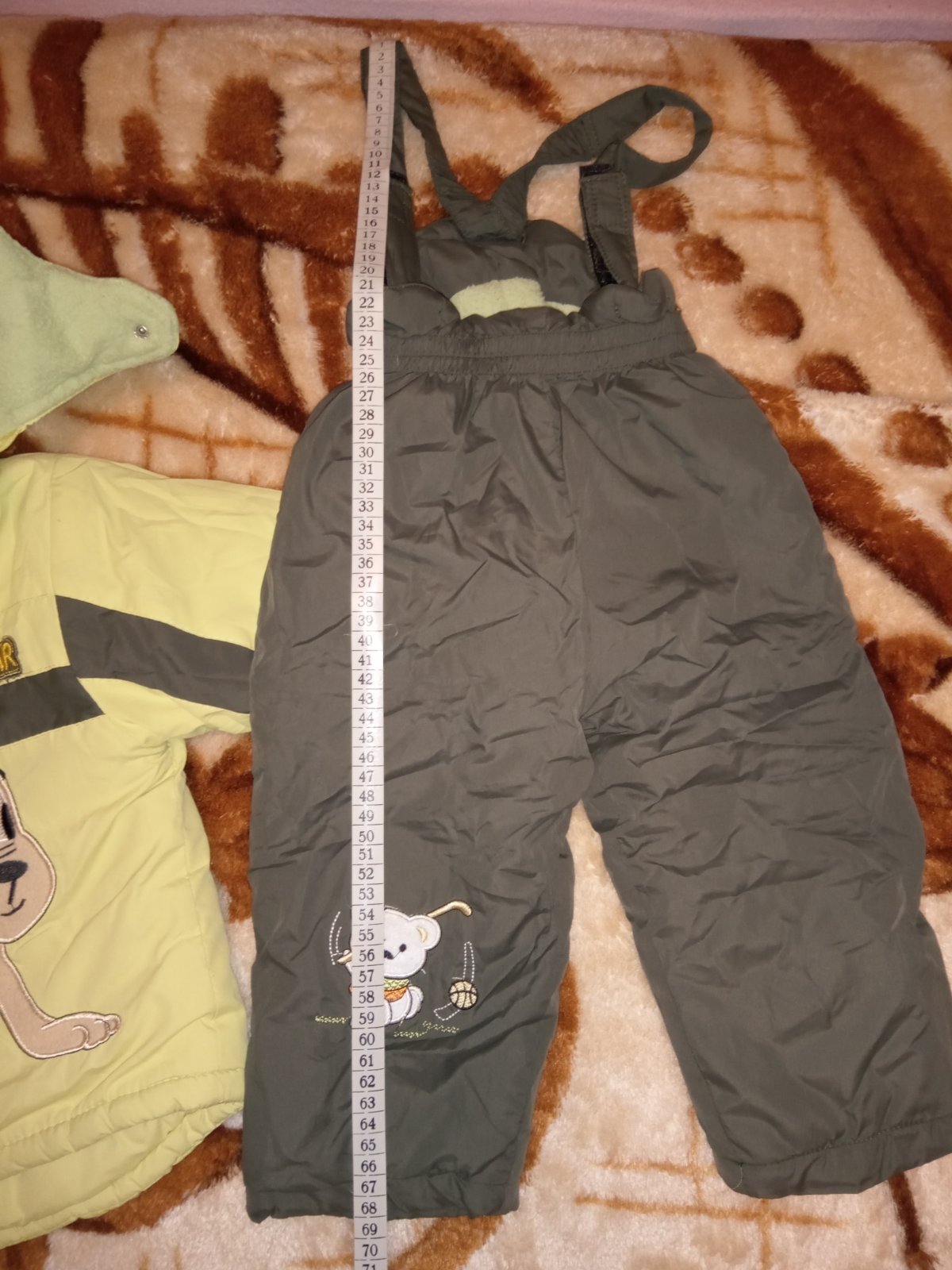 Celá zateplena, písaná veľ.92/98, ale nohavice sú istotne menšie. Rozmery vo foto. Môjmu je to už malé. Sedia na 86.. Pekný noseny stav, chyba - odlomené kúsok z bežca(viď foto)