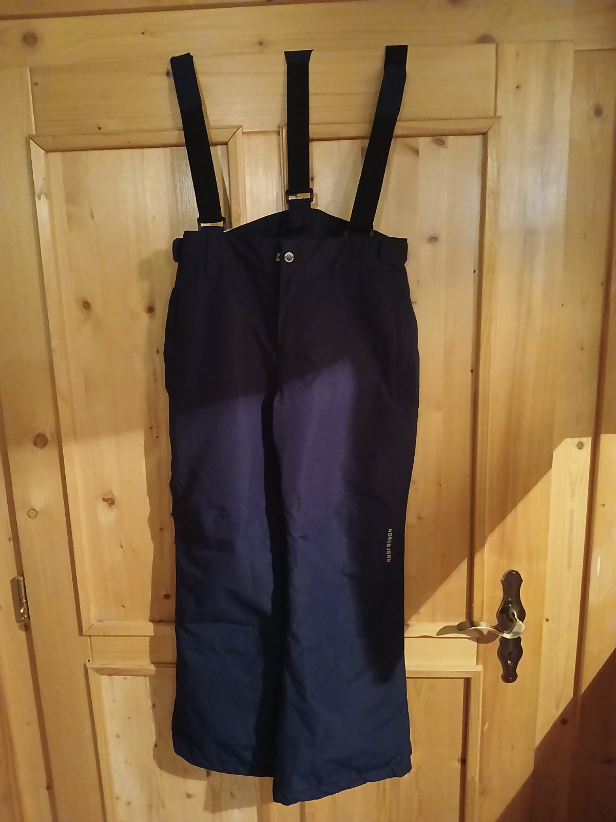 Farba ako na prvej fotke / fotené na dverách / Lyžiarske nohavice Orsa od Nordbjørn s nastaviteľnými trakmi . Majú dve bočné vrecká.