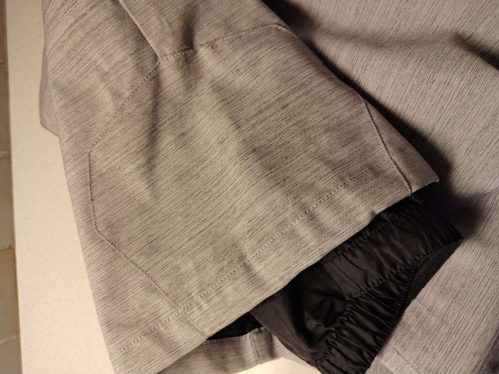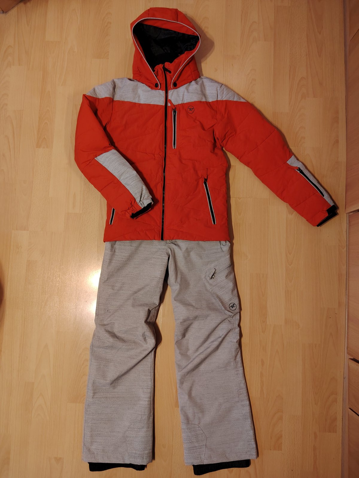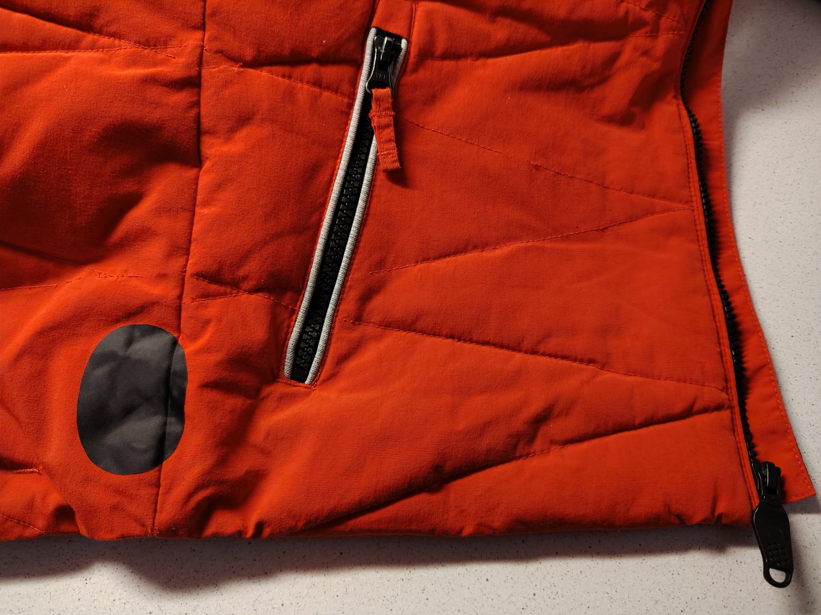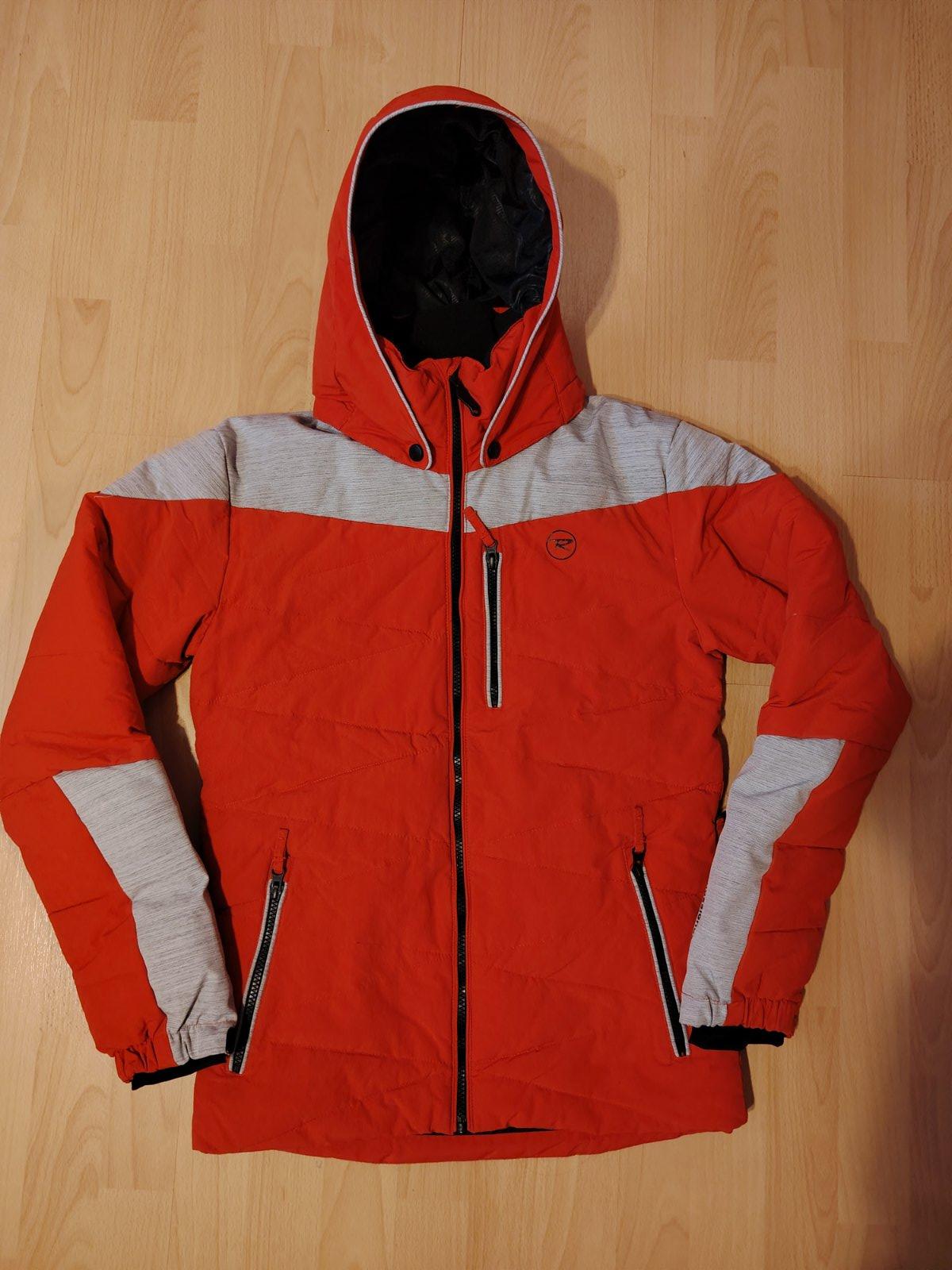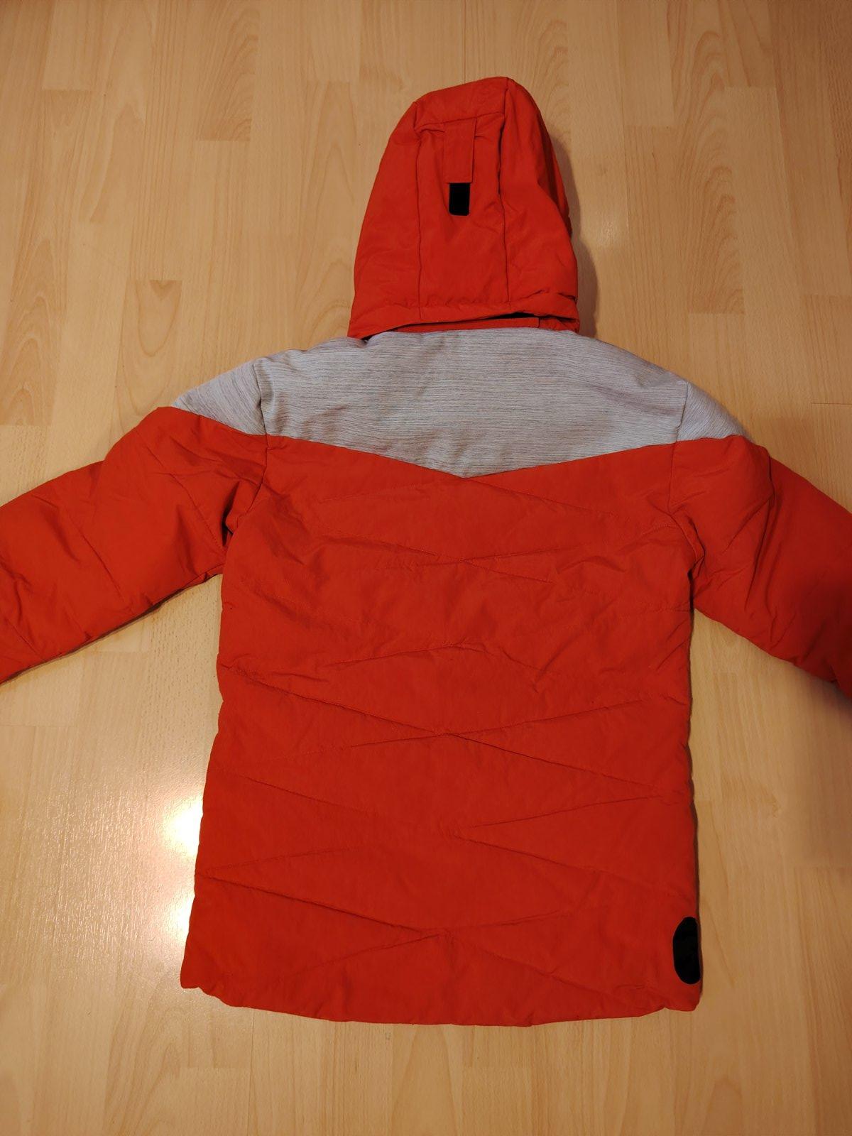 Bunda nosená často. Napriek tomu bez funkčnych poškodení, všetky zipsy, obyčajné aj suché fungujú. Rukávy neodraté. Kapucňa odopínateľná, snežný pás, vrecko na skipas. Nedostatky sú: na pravej strane pri vačku bola dierka, je na nej nalepená čierna záplata. Na niektorých miestach je bunda ošúchanejšia a na viacerých roztrhntá niť, ktorou je bunda prešitá - okrasné štepovanie.