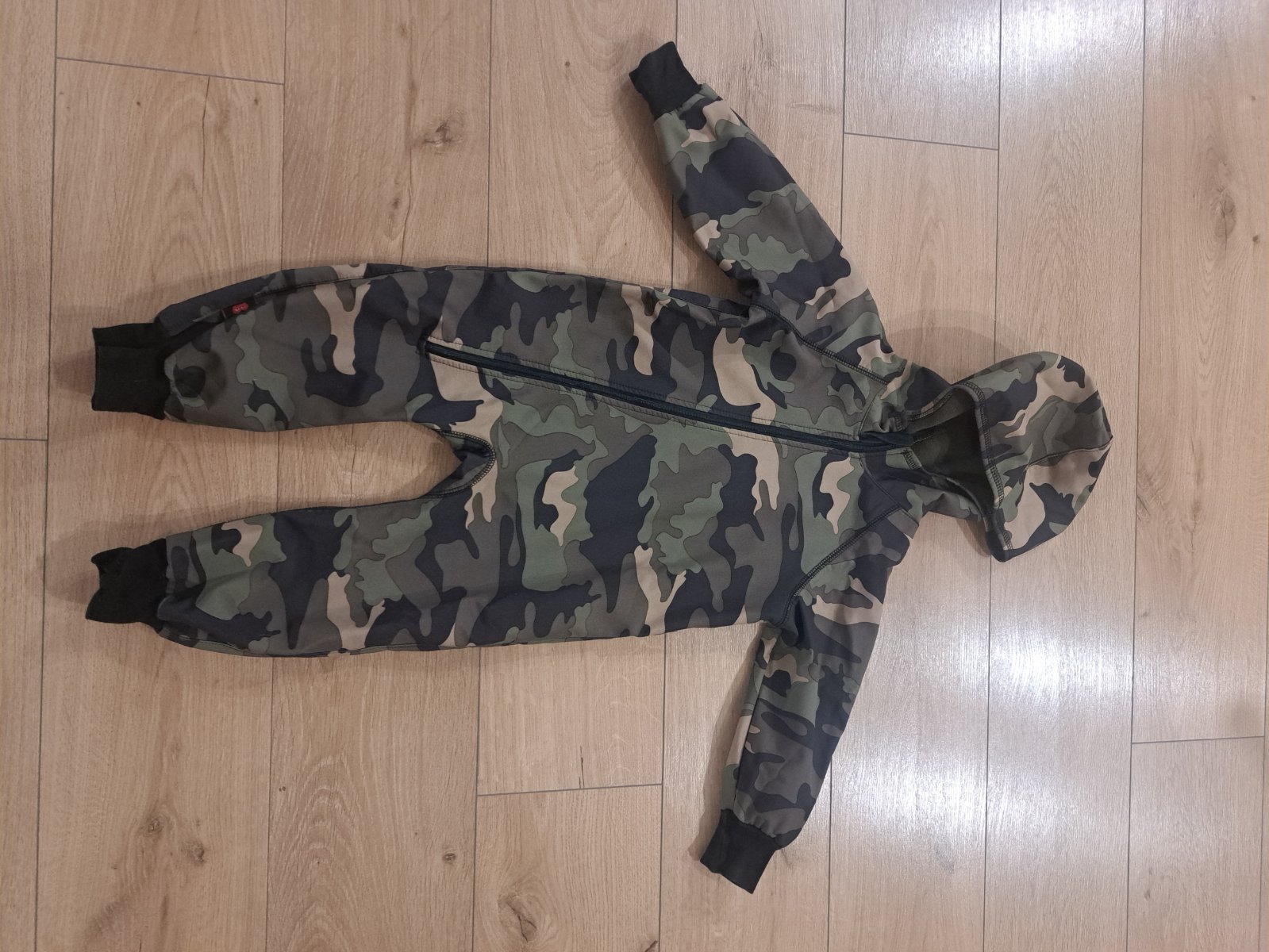 krásna nepremokavá vodoodolná a vetruodolná prechodná softshelová kombinéza vhodná pre chlapca.nemá odnímateľnú kapucňu, reflexna potlač na zadnej strane na jednej nohe trochu osuchana co však nemení nič na funkčnosti.cena prisposobena