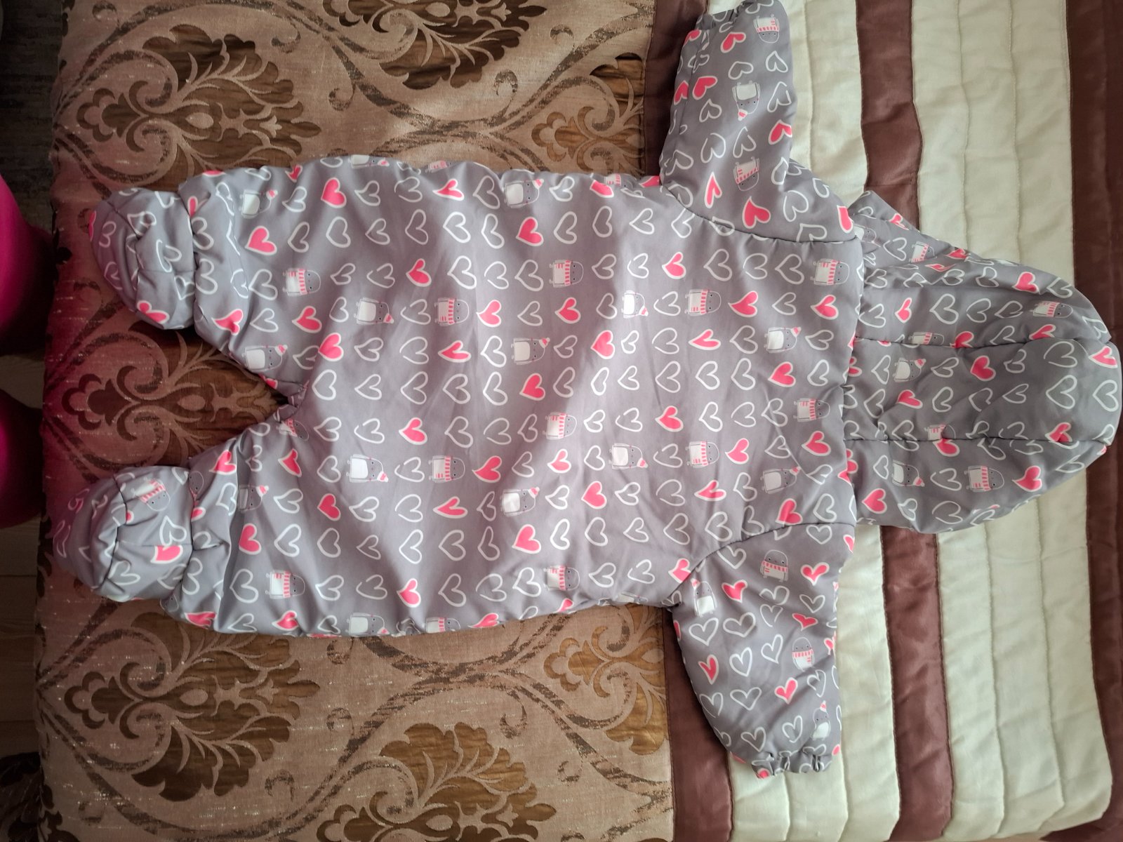 Novy teply zimny overalik spolu s rukavicami a papuckami. Dl overalu 53cm dl rukava 28cm Dl od rozkroku 20cm