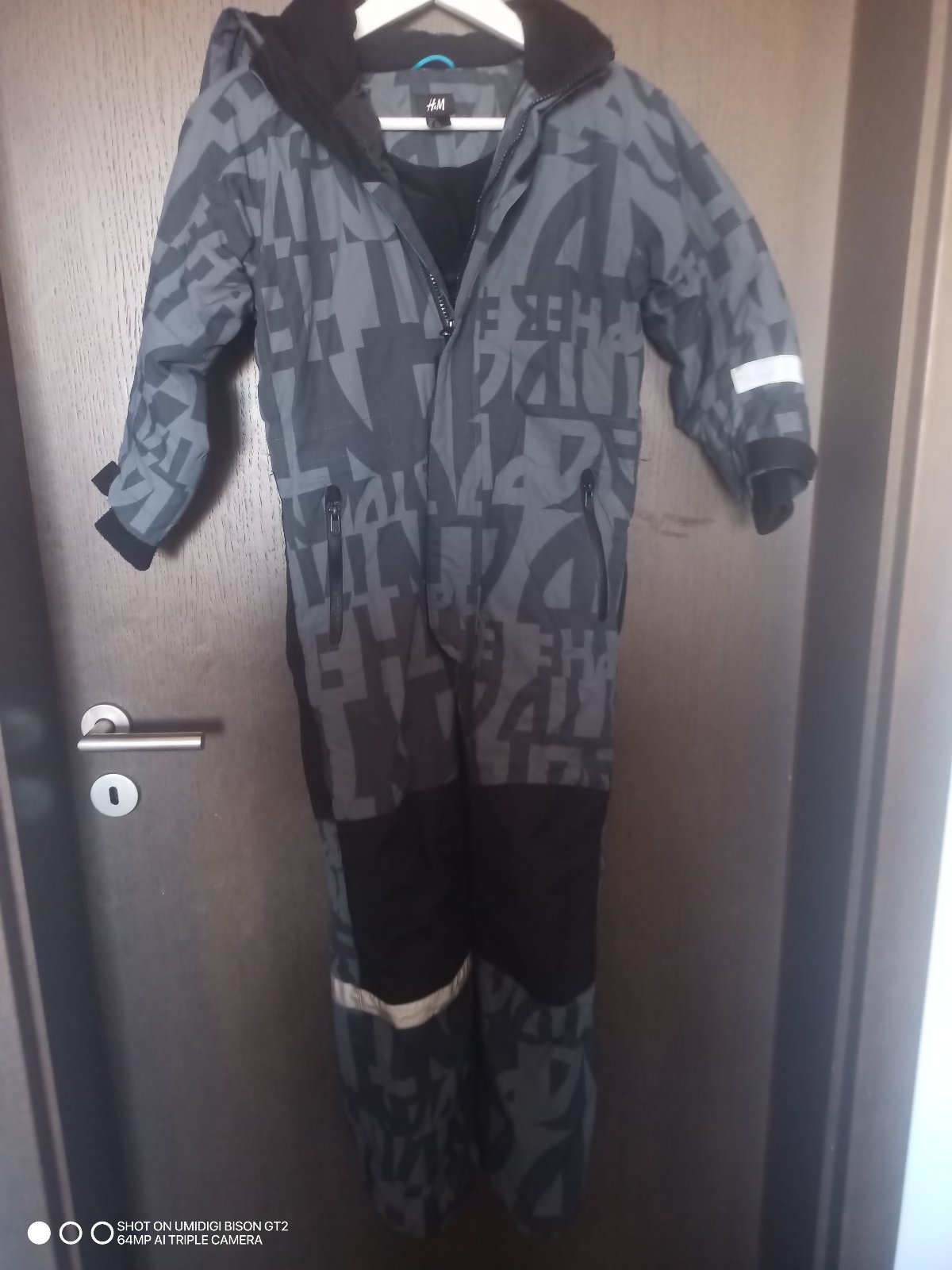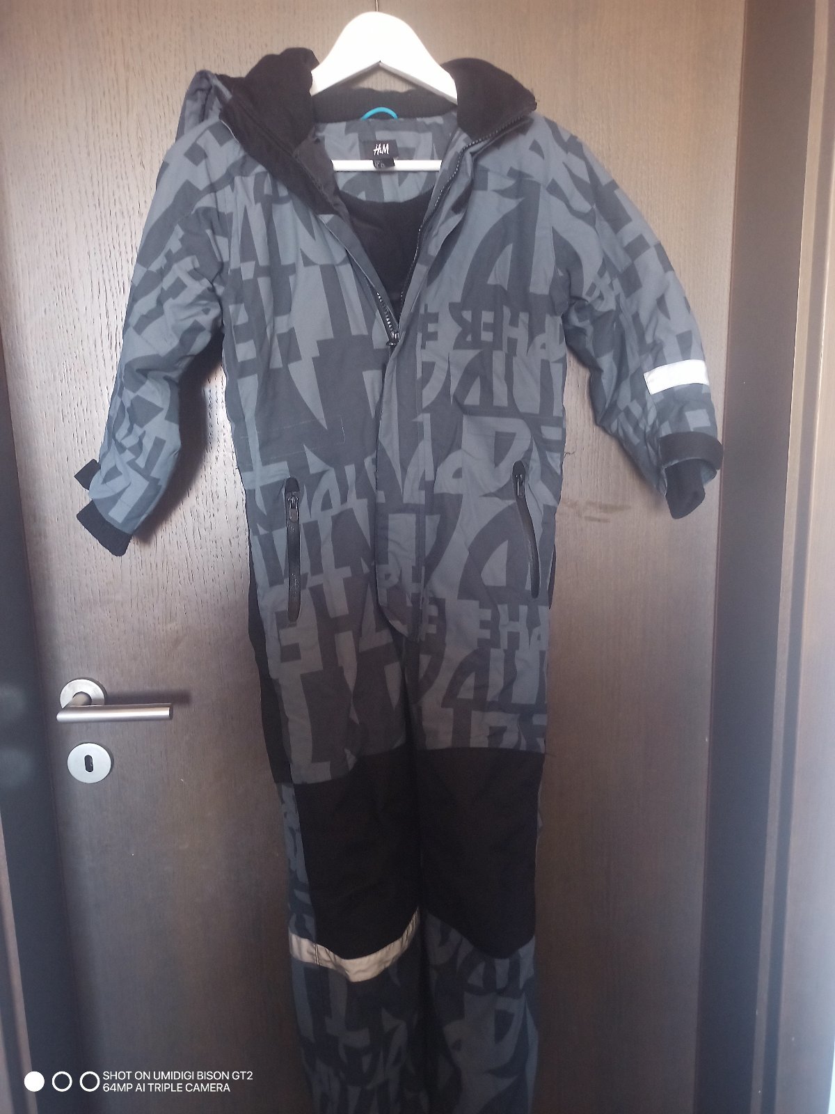 HM zimná kombinéza, veľkosť 122, 6-7 rokov. Cordura materiál, nepremokavá, teplá. Odopínacia kapucňa. Oblečená príležitostne na striedačku s iným oblečením na svah. Pri fotení som si všimla mikro škvrnku na prekrytí suchého zipsu kapucne. Nevidno (je na tmavom podklade). asi od iskry, ktorá odfrkla (skauting). Neprešla látkou, len estetická záležitosť. Pri štítku z vnútornej strany je mini fliačik od nálepky s menom, ktorá tam bola nalepená. Zohľadnené v cene. Má priestor na vrstvenie oblečenia. Vynosíte určite dve sezóny. PC 70e.